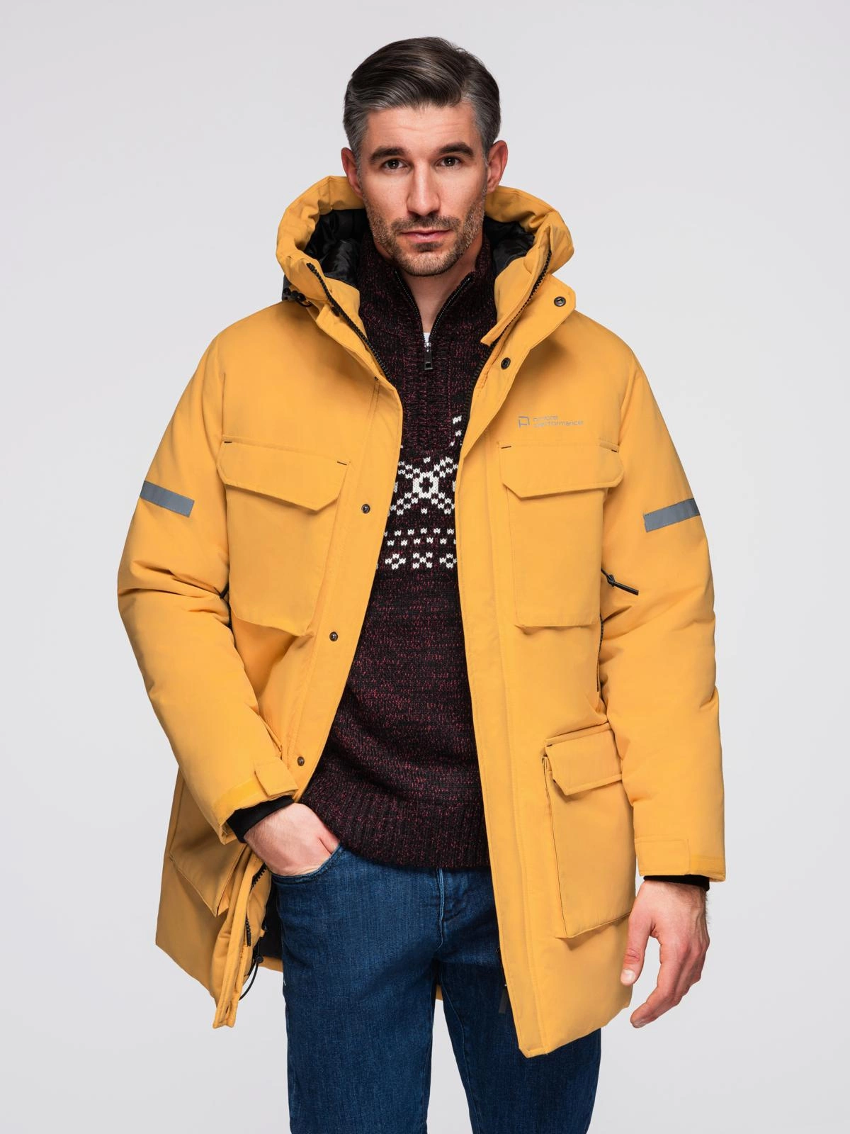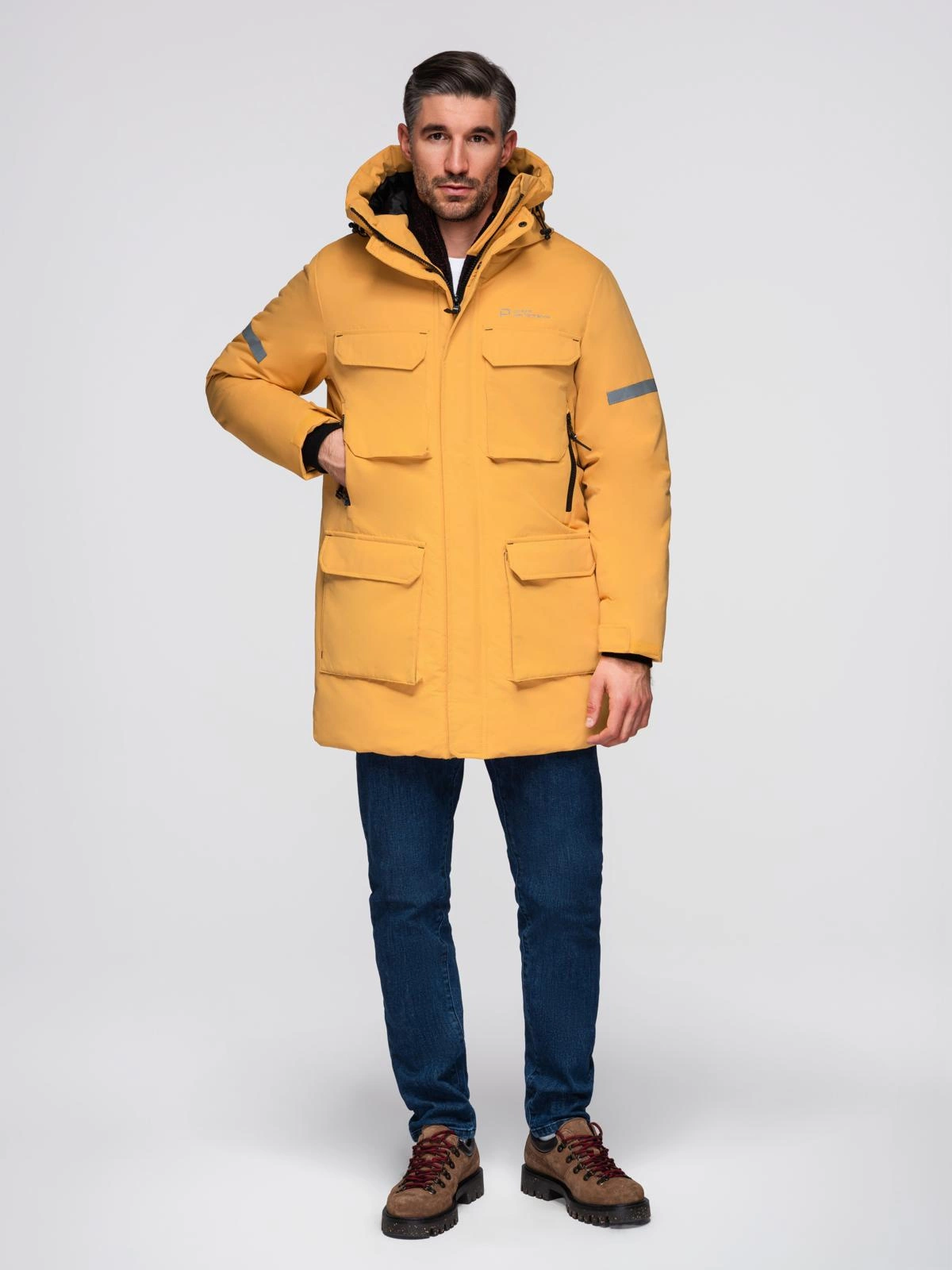 Pánska dlhá zateplená bunda s reflexnými prvkami - žltá V2 OM-JALJ-0169