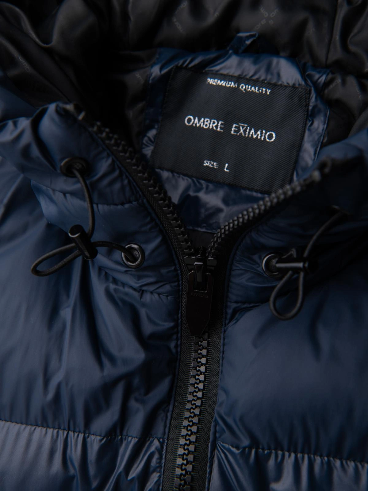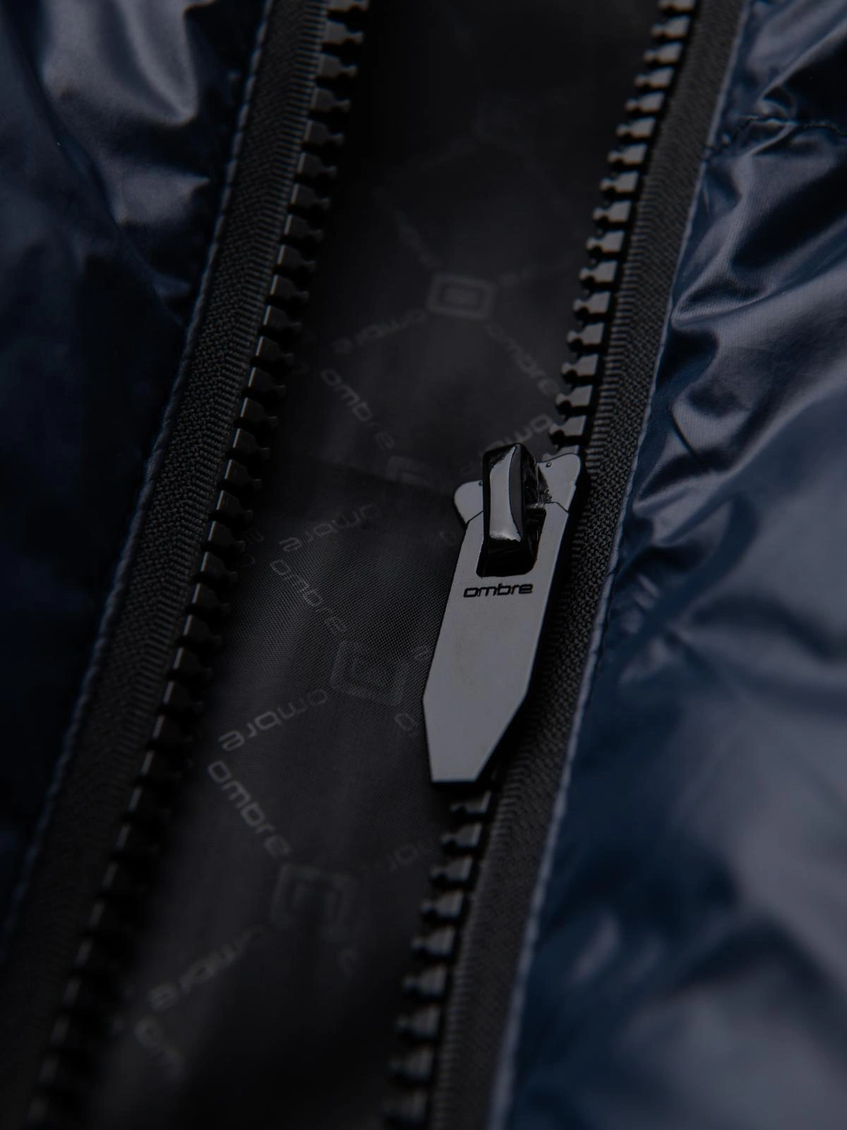 Pánska teplá bunda s rebrovaným lemom - tmavomodrá V2 OM-JAHP-0207