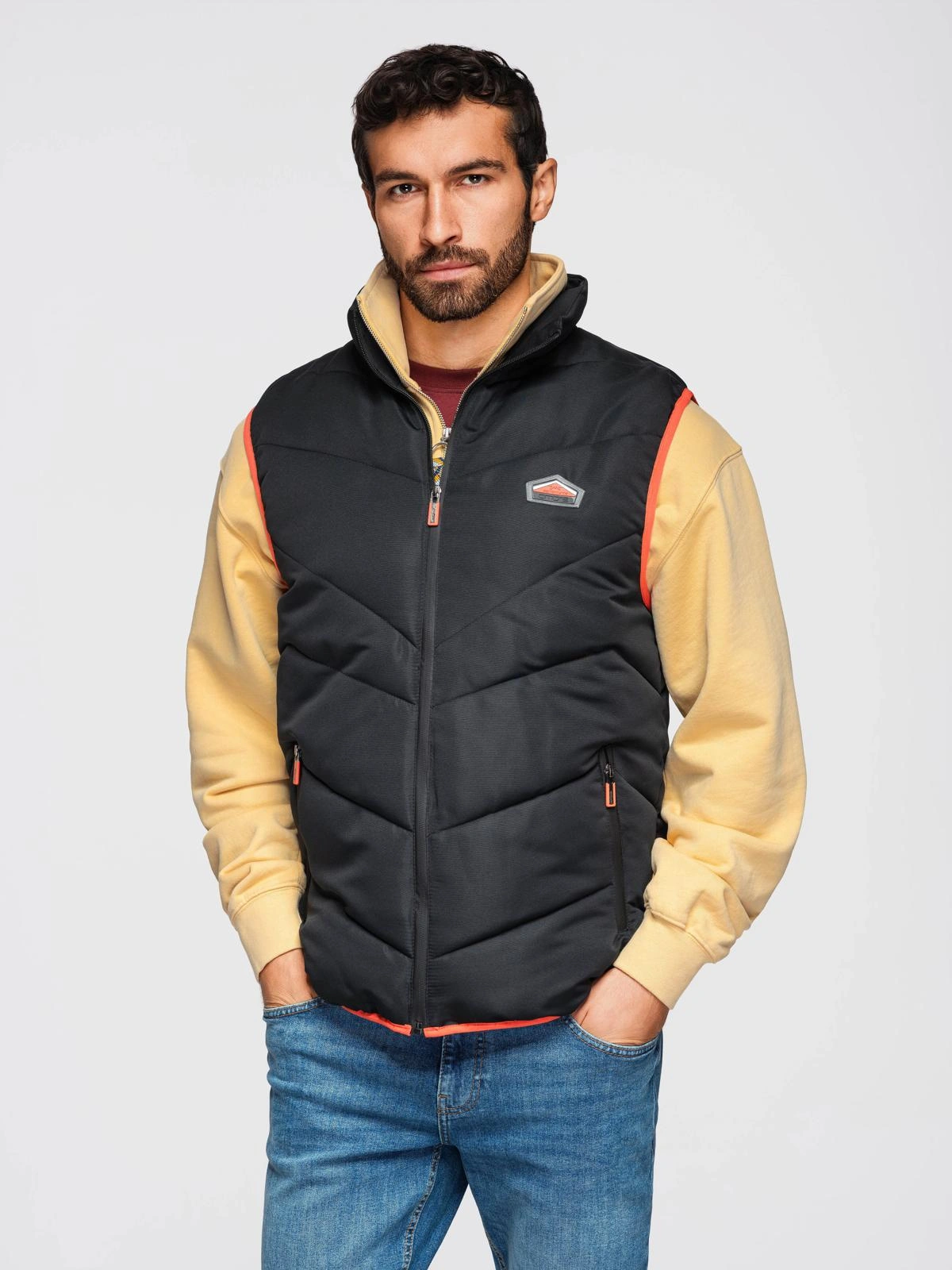 Pánska prešívaná bunda bez rukávov s neónovými prvkami - čierna V4 OM-JAVJ-0210