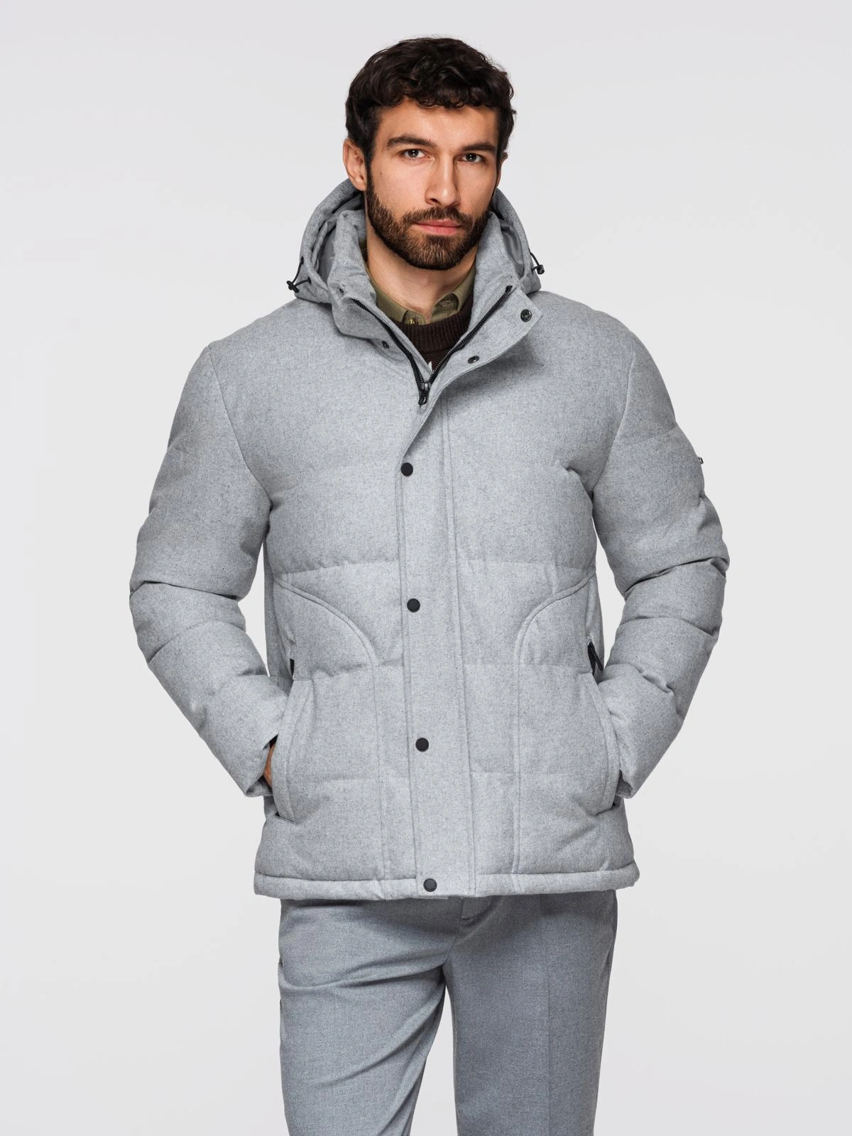 Pánska ľahká bunda so sieťovanou podšívkou a kapucňou - sivá V6 OM-JANP-0149
