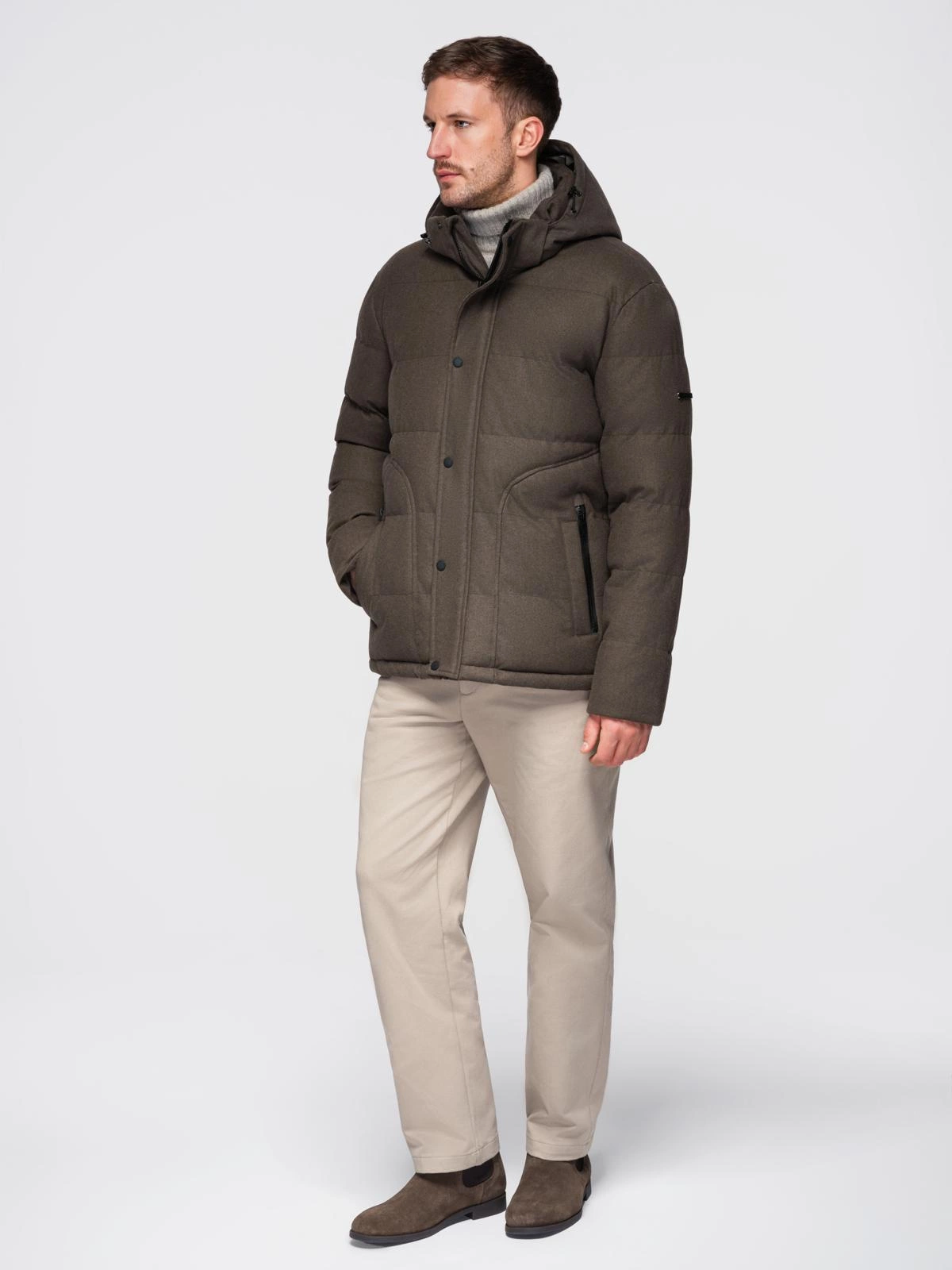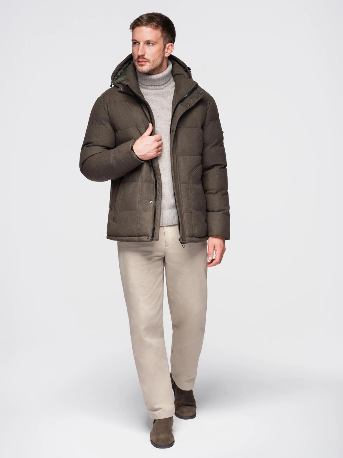 Pánska ľahká bunda s kapucňou a sieťovanou podšívkou - olivová V2 OM-JANP-0149