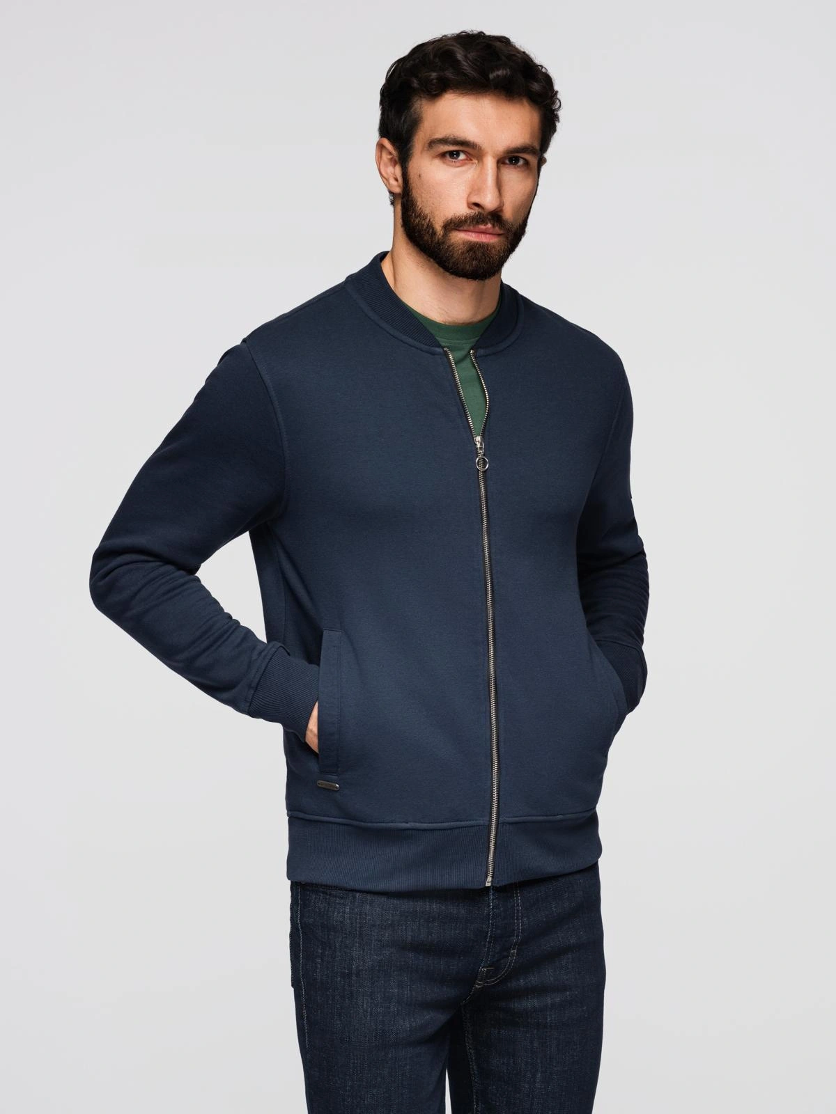Pánska bavlnená mikina bomber - tmavomodrá V4 OM-SSZP-0215