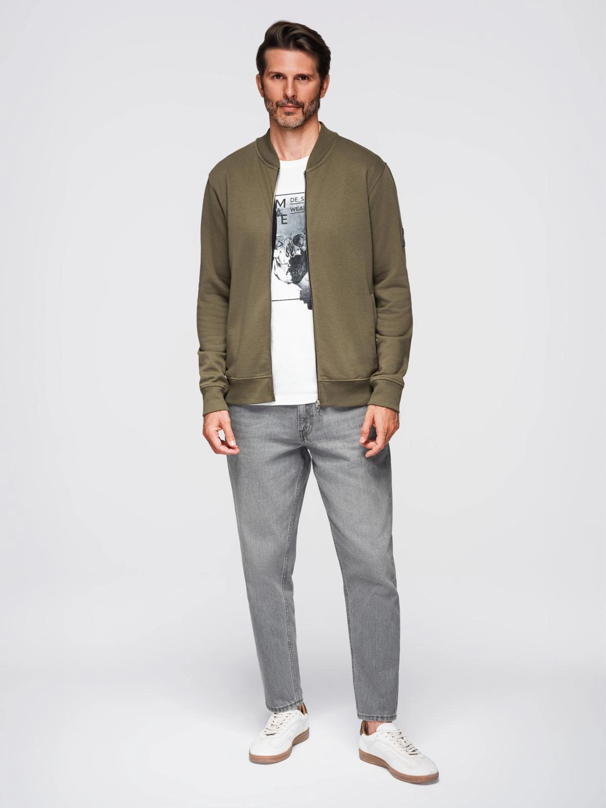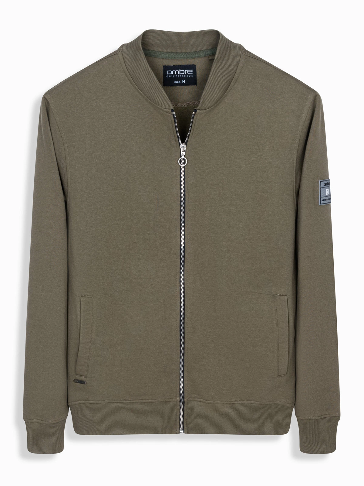Bavlnená pánska mikina na zips bomber - khaki V1 OM-SSZP-0215