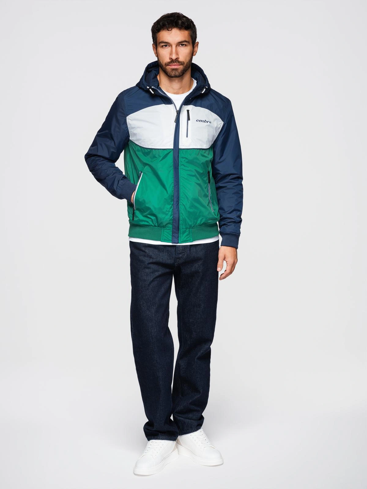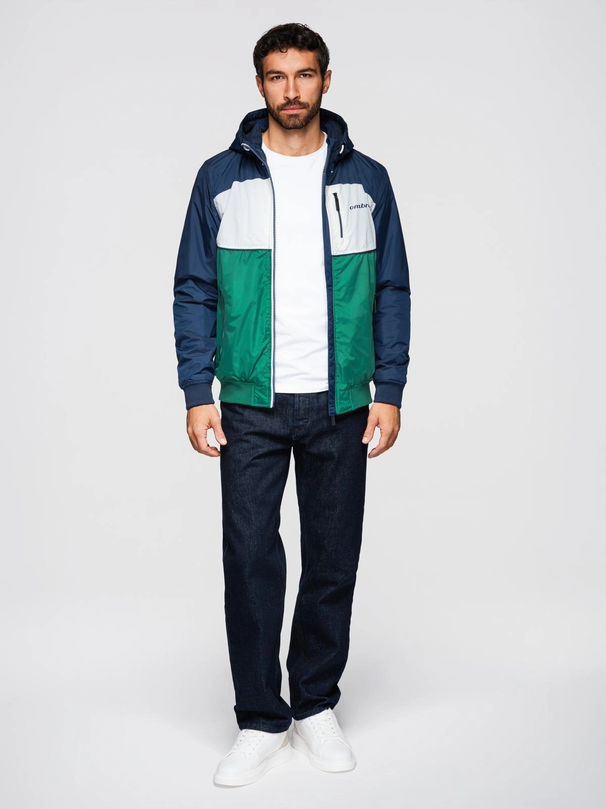 Pánska ľahká farebná športová bunda s fleecom - zelená a tmavomodrá V20 OM-JANP-0194