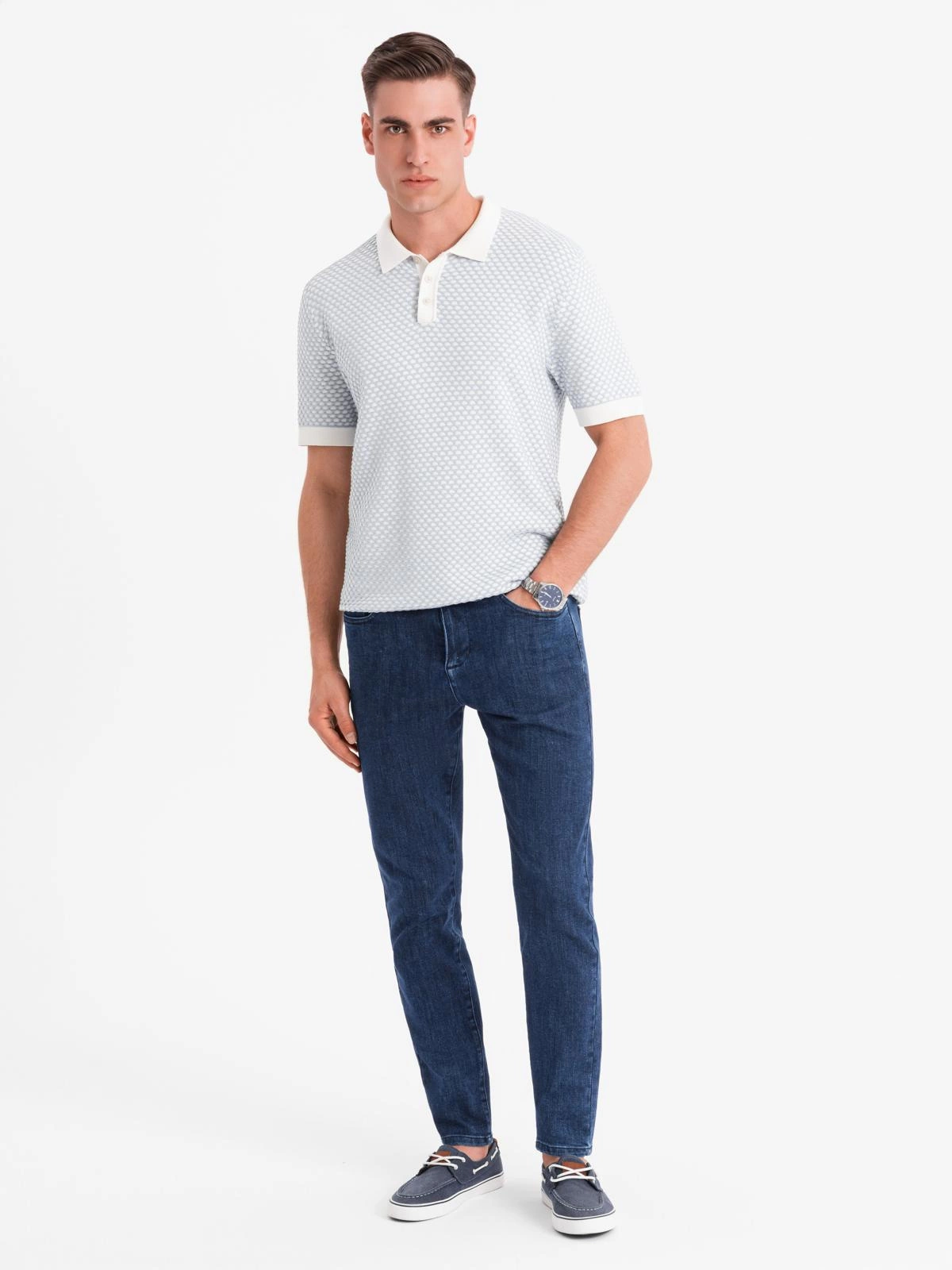 Klasické pánske džínsy SLIM FIT s elastanom - tmavomodré V3 OM-PADP-0216