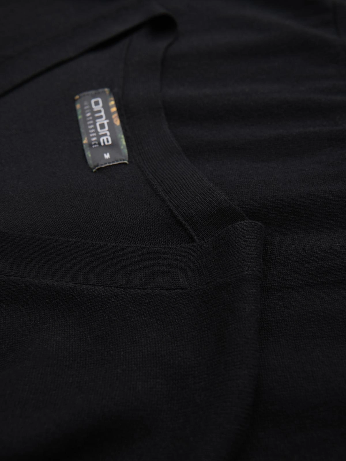 Pánsky jednofarebný pletený sveter z viskózy - čierny V2 OM-SWCD-0126