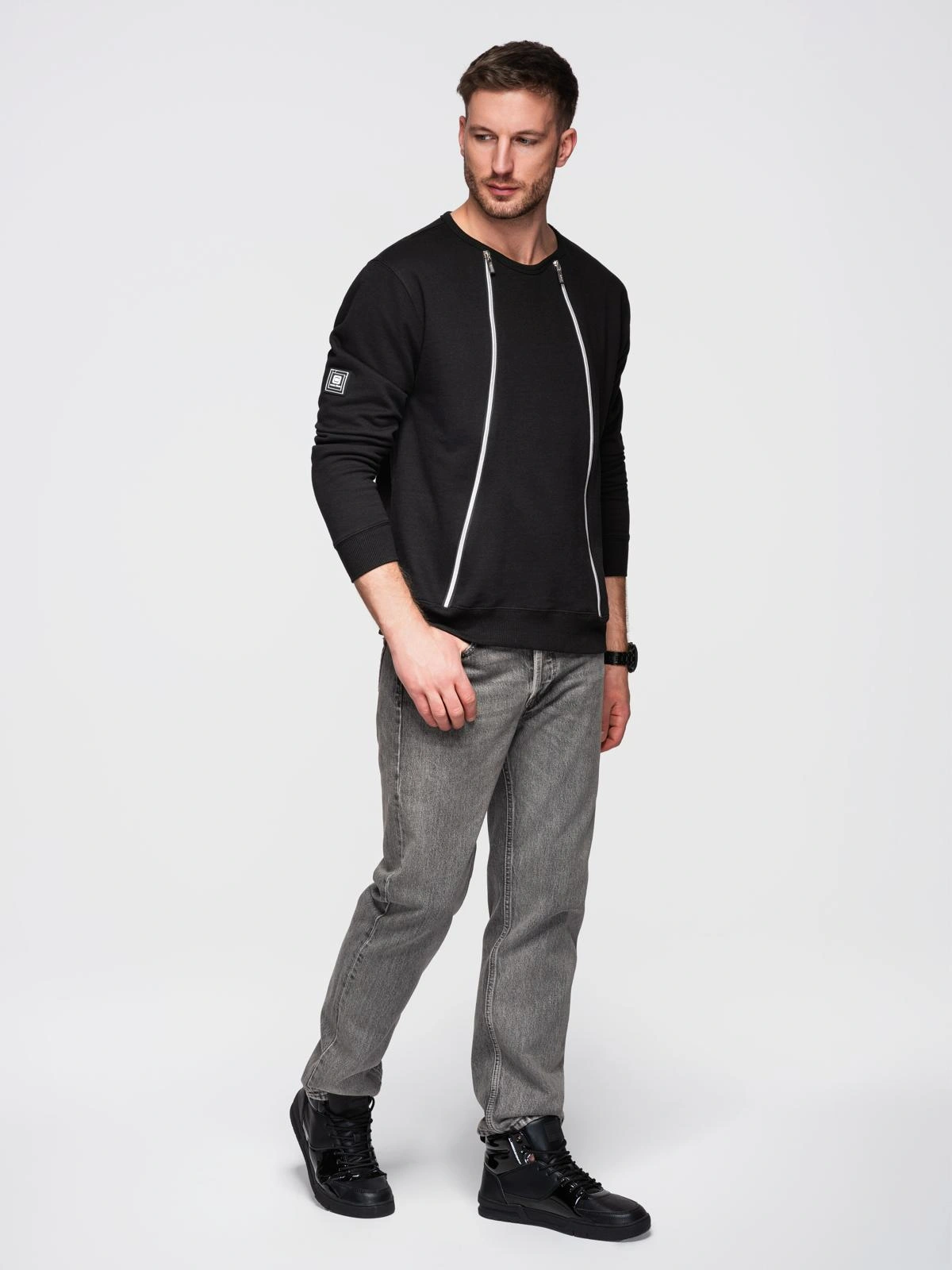 Pánska mikina s ozdobnými prednými zipsami - čierna V1 OM-SSNZ-0187