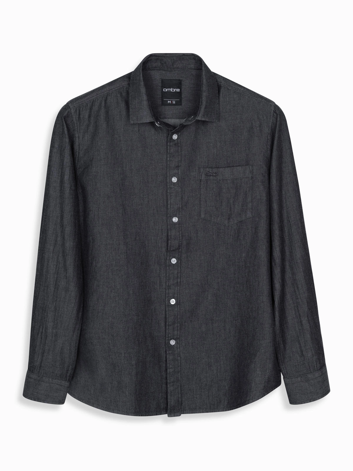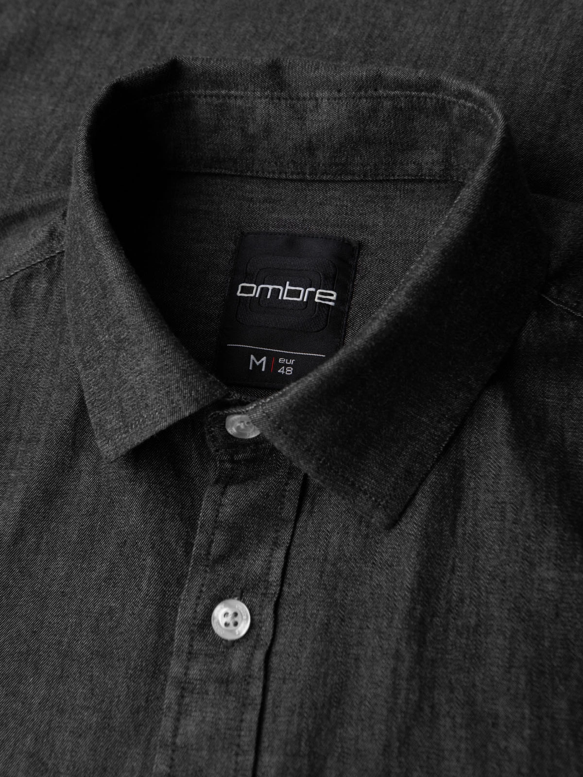 Pánska džínsová košeľa s vyšívaným vreckom - čierna V2 OM-SHDS-0181