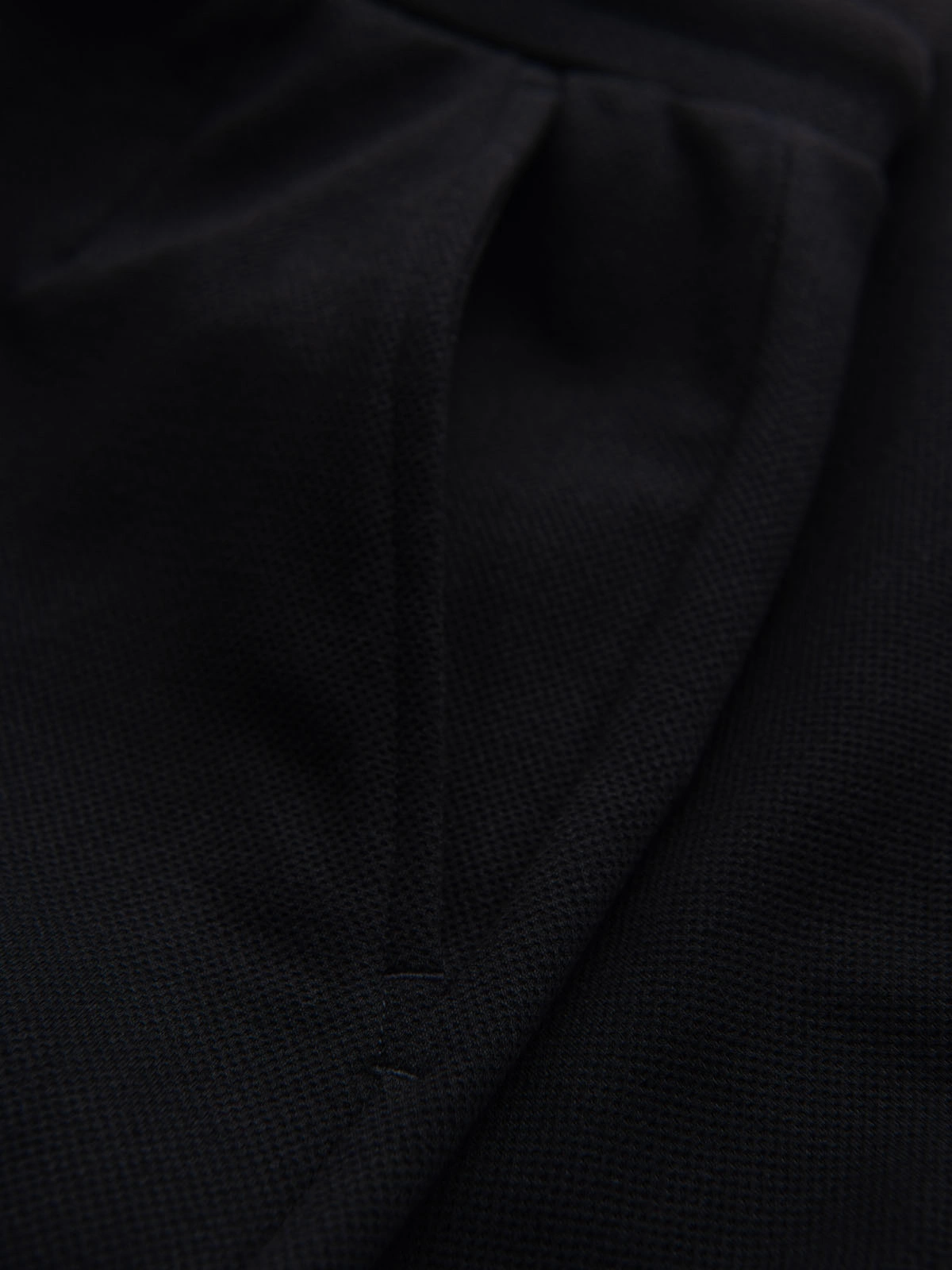 Pánske šortky pod kolená z kolekcie Ombre Quintessence sa dokonale hodia k ležérnym outfitom. Jednofarebnosť a klasický strih sú zvýraznené jemnými detailmi, ktoré šortkám dodávajú jedinečný charakter. Úplet zo zmiešaných vlákien je zodpovedný za na dotyk príjemnú štruktúru tkaniny. Vyhrnuté lemy nohavíc a záhyby pripomínajúce zadné vrecká a rozparok dodávajú štýl. Ozdobná šnúrka v páse a decentné označenie značky dotvárajú vzhľad.