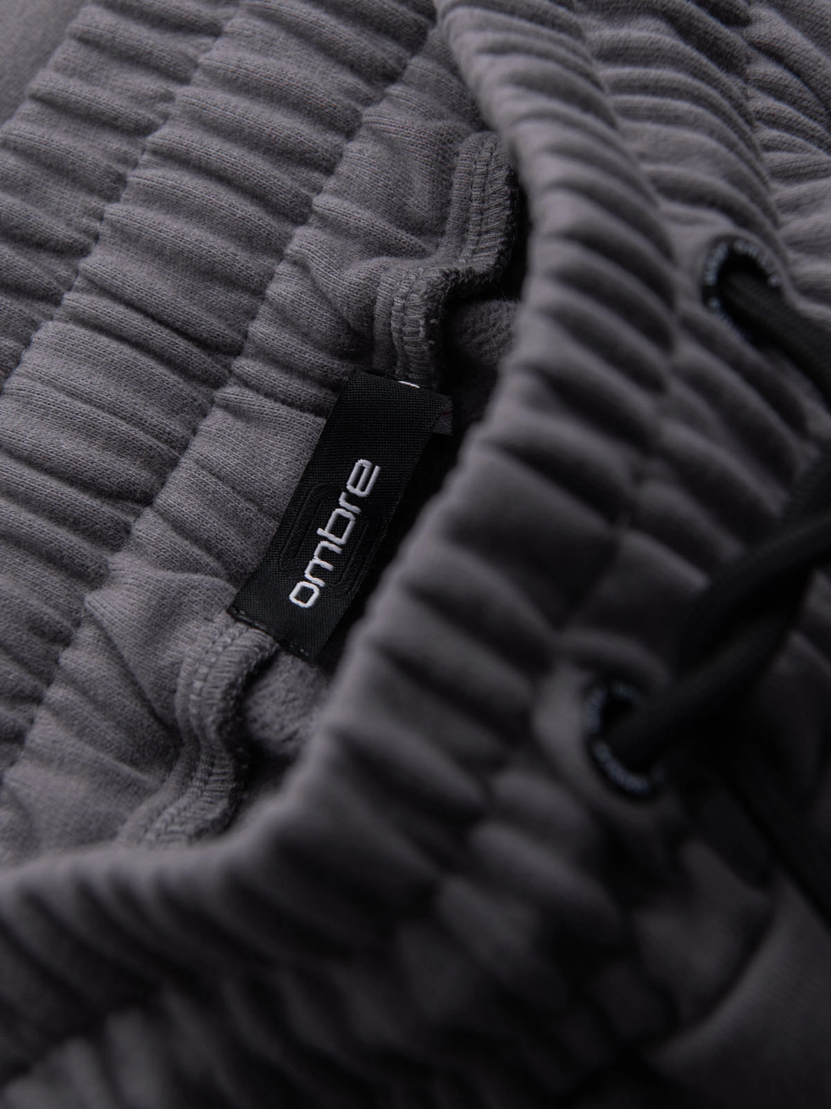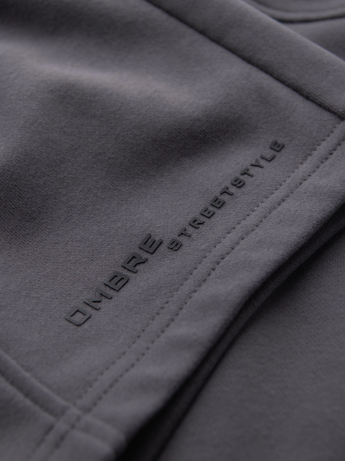Pánske krátke teplákové šortky s potlačou - sivé V3 OM-SRSK-0138