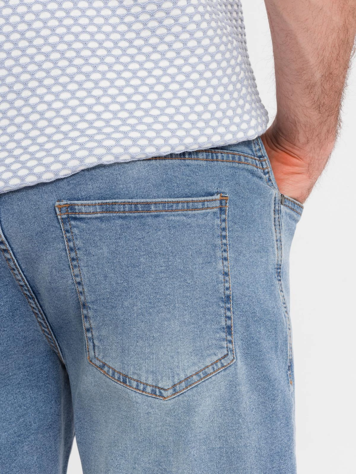 Denimové pánske šortky klasického strihu - svetlomodré V2 OM-SRDS-0171