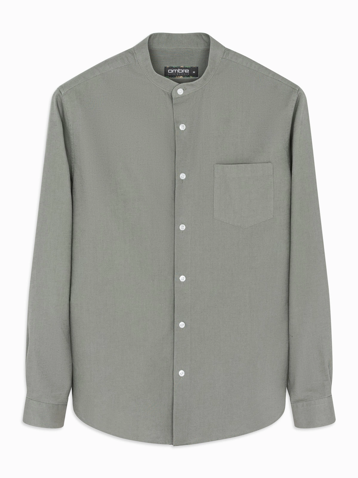 Pánska ľanová košeľa so stojačikom a vreckom REGULAR FIT - khaki V6 OM-SHCS-0161