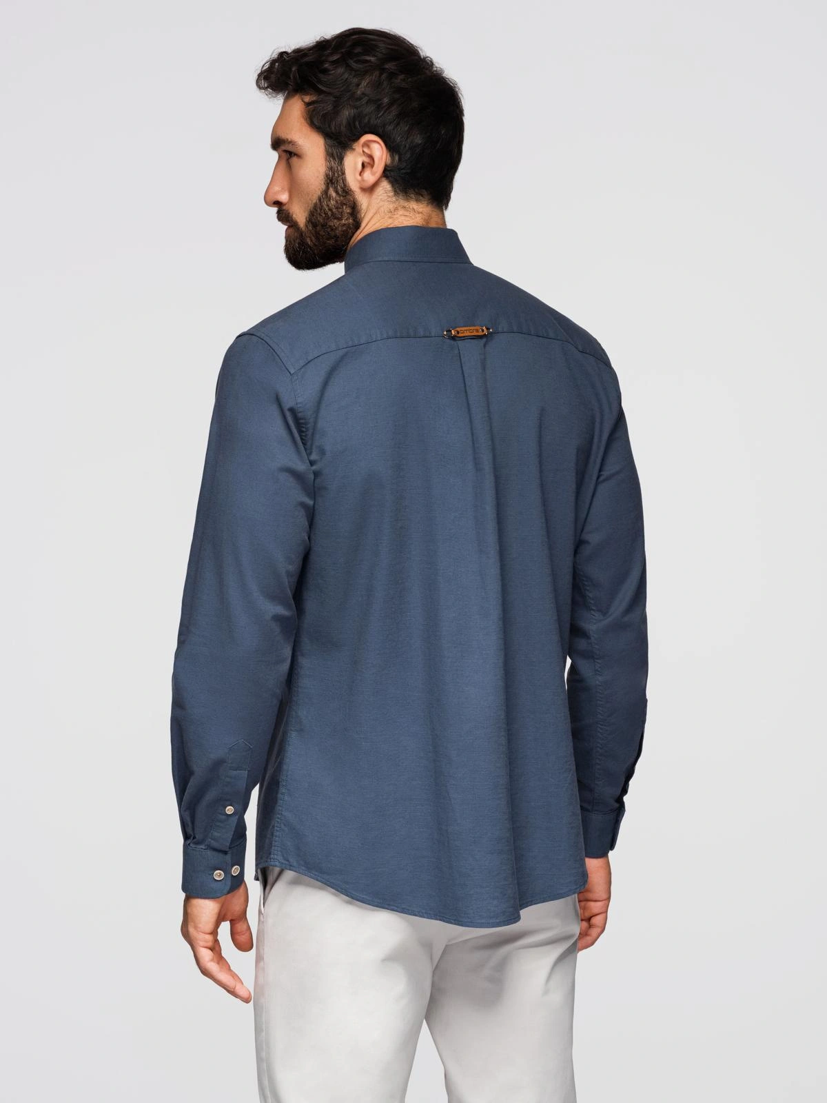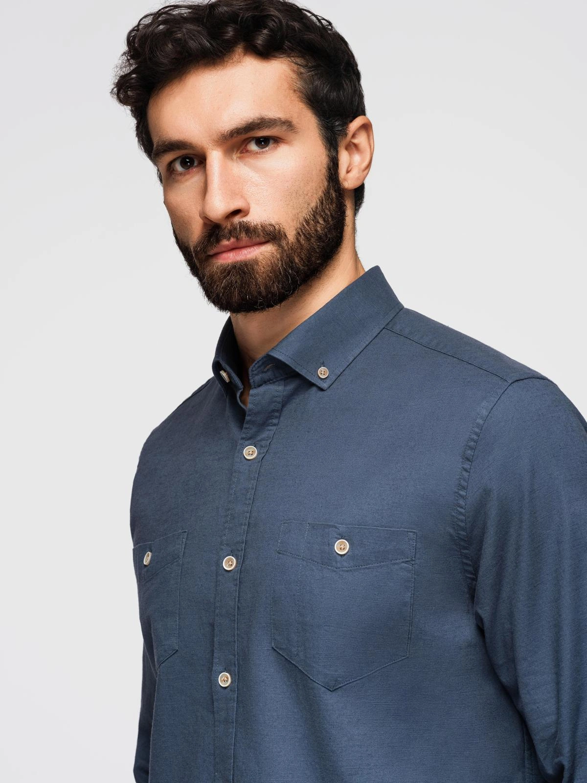 Pánska ľanová košeľa s klasickým golierom a vreckami REGULAR FIT - modrá V4 OM-SHCS-0134