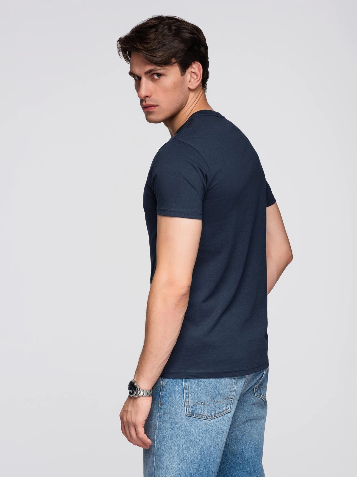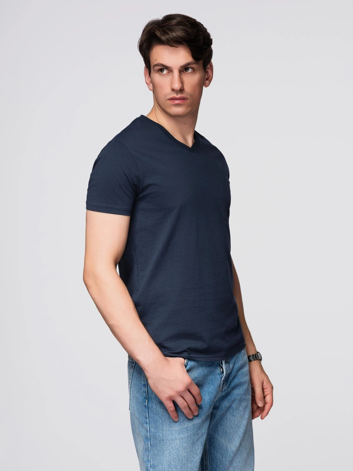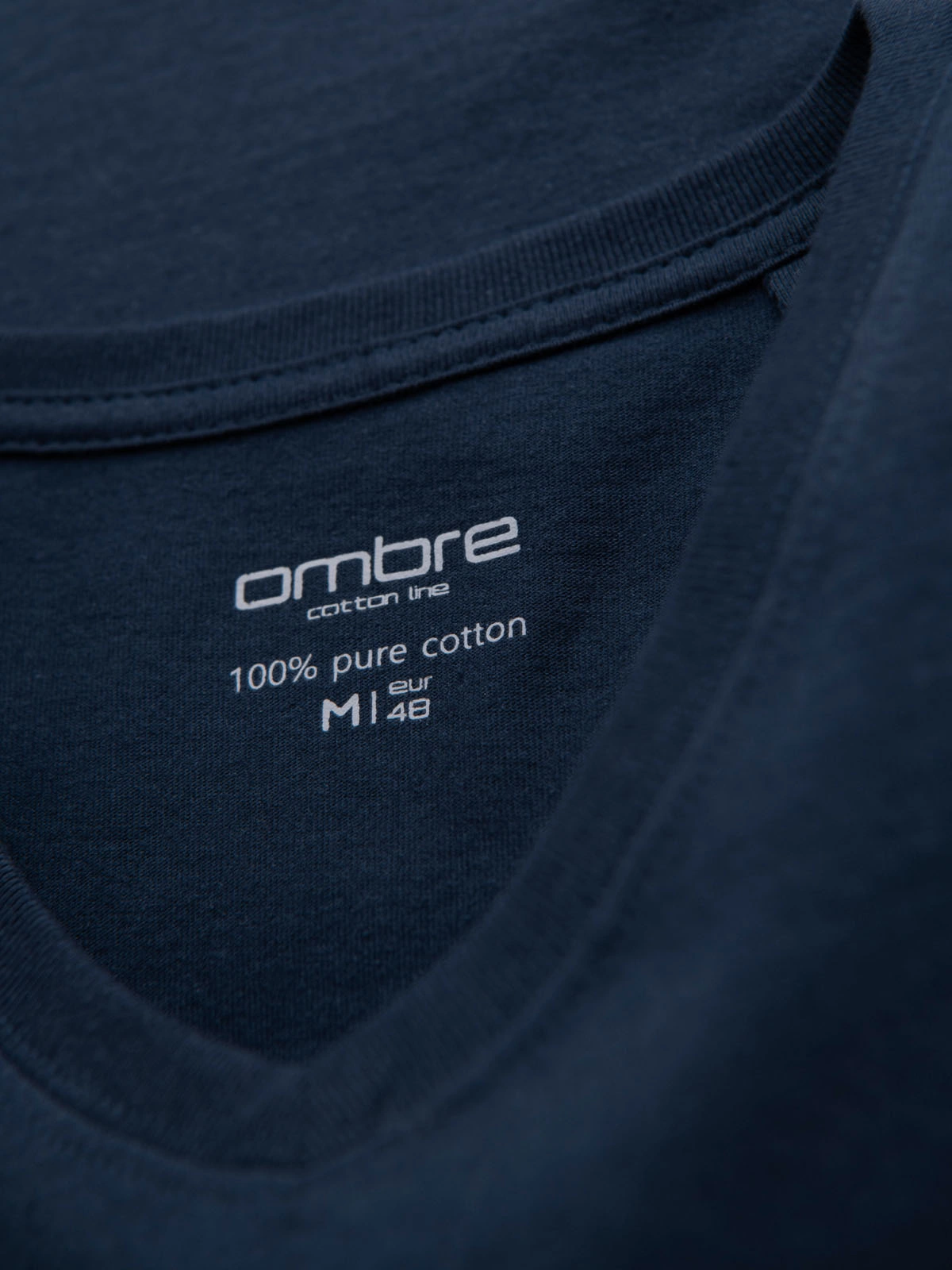 Pánske klasické bavlnené tričko BASIC s výstrihom do V - tmavomodré V2 OM-TSBS-0237