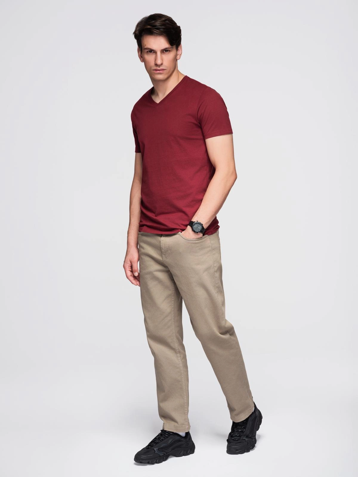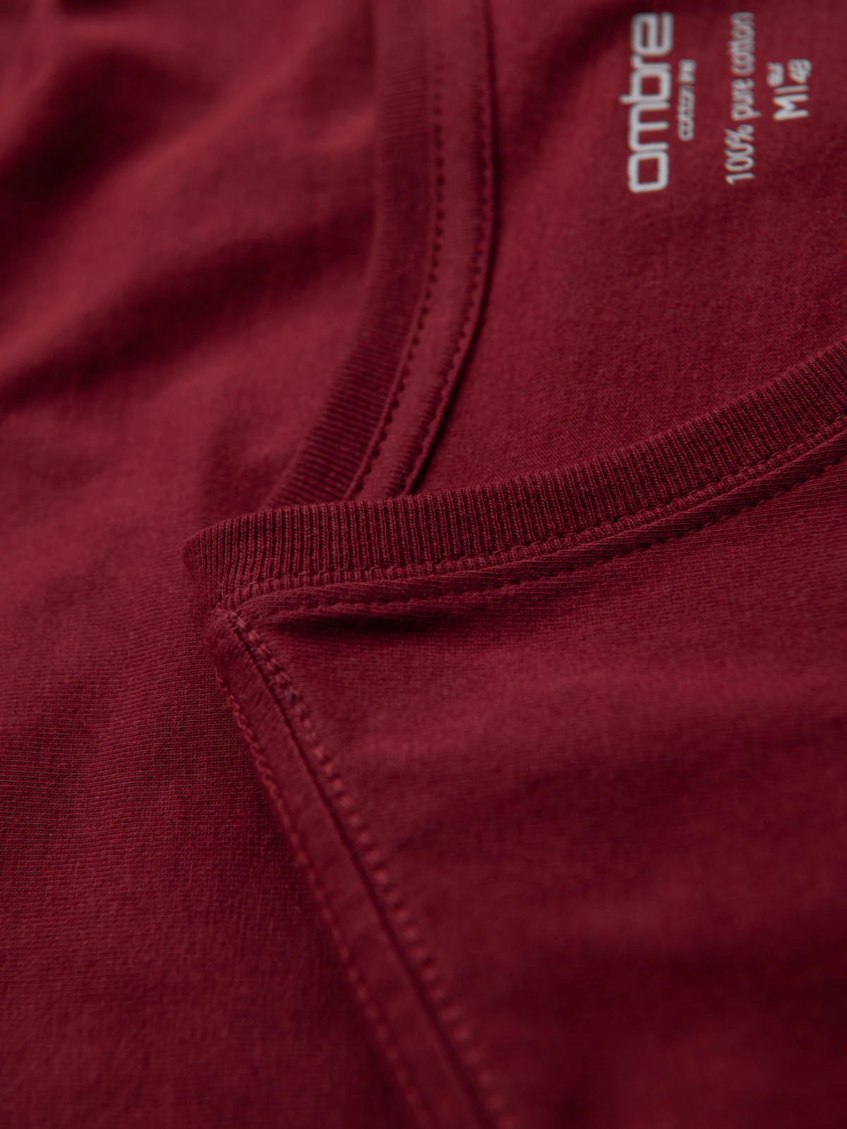 Bavlnené klasické pánske tričko BASIC s výstrihom do V - bordová V10 OM-TSBS-0237