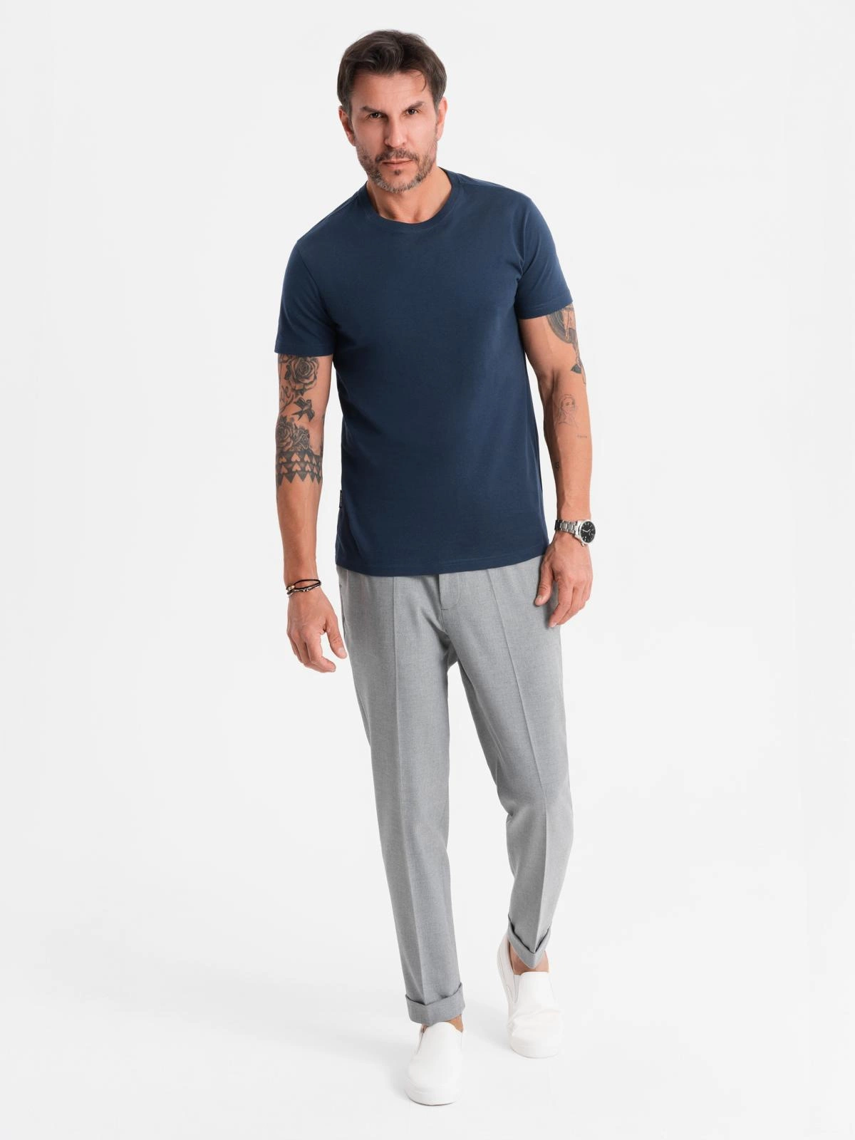 Klasické bavlnené pánske tričko BASIC - tmavomodré V2 OM-TSBS-0236