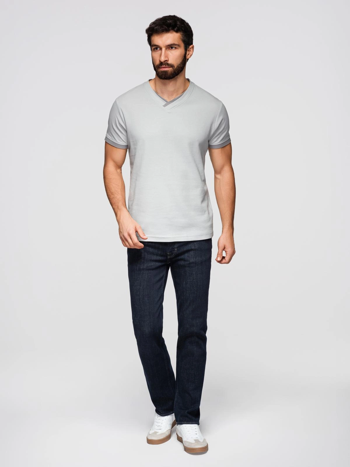 Pánske tričko s kontrastnými vsadkami a véčkovým výstrihom - svetlosivé V4 OM-TSCT-0198