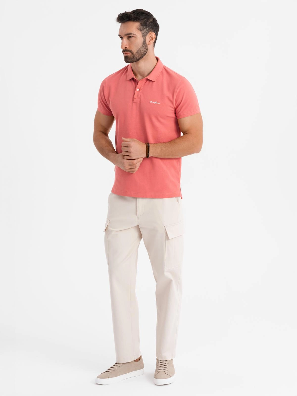 Bavlnená polokošeľa z piké úpletu - koralová V6 OM-POSS-0103