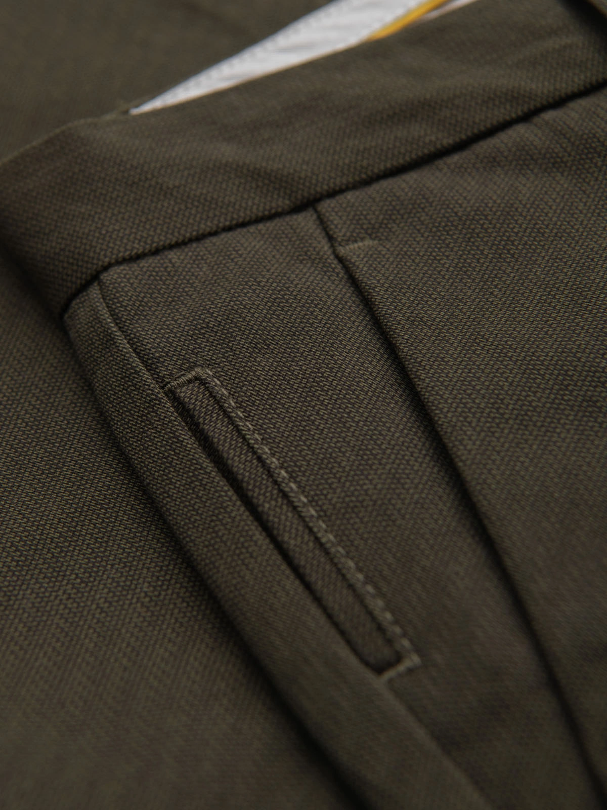 - Pravidelný strih chino nohavíc pre pohodlie a voľnosť
