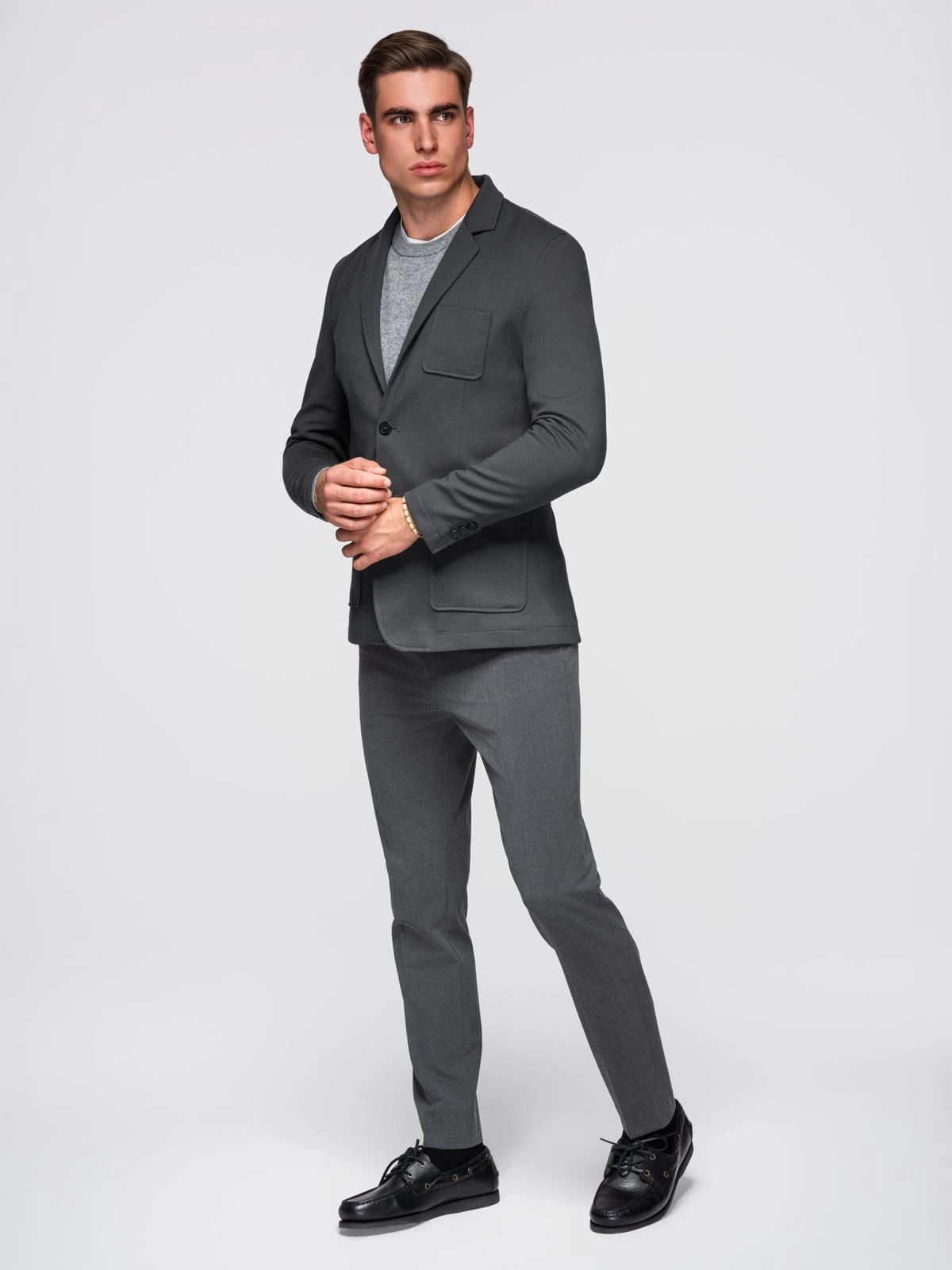 Pánska bunda SLIM z jemne štruktúrovaného úpletu - grafitová V1 OM-BLZB-0101