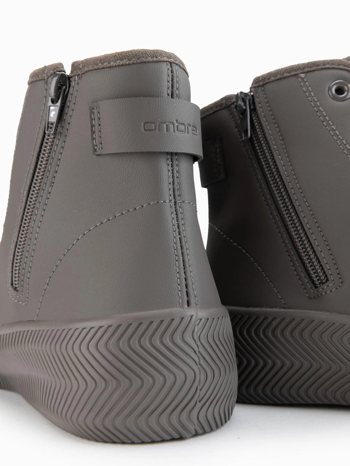 Pánske vysoké tenisky so zipsom na jednoduché obúvanie - tmavobéžové V3 OM-FOTH-0184