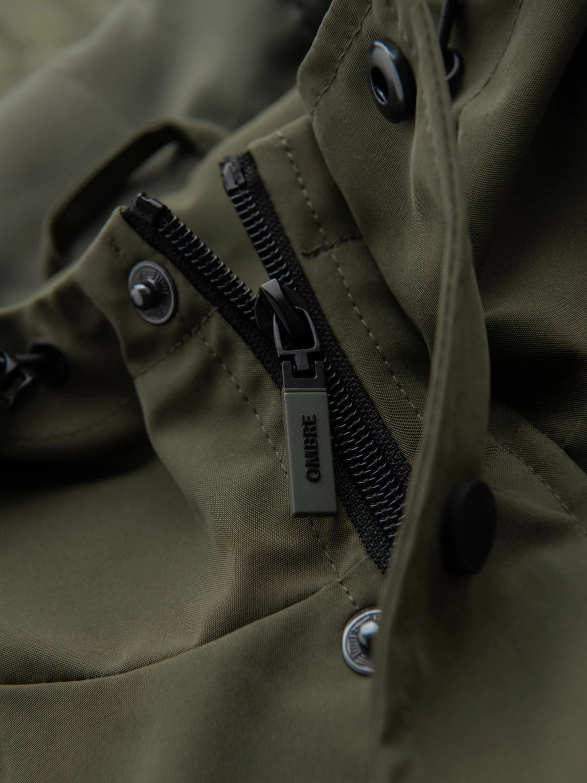 Pánska funkčná prechodná bunda s kapucňou - olivová V2 OM-JANP-0225
