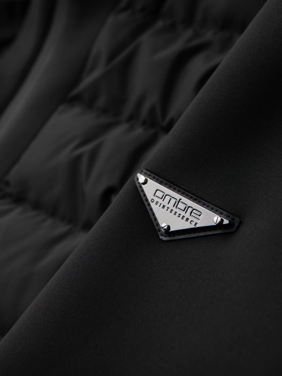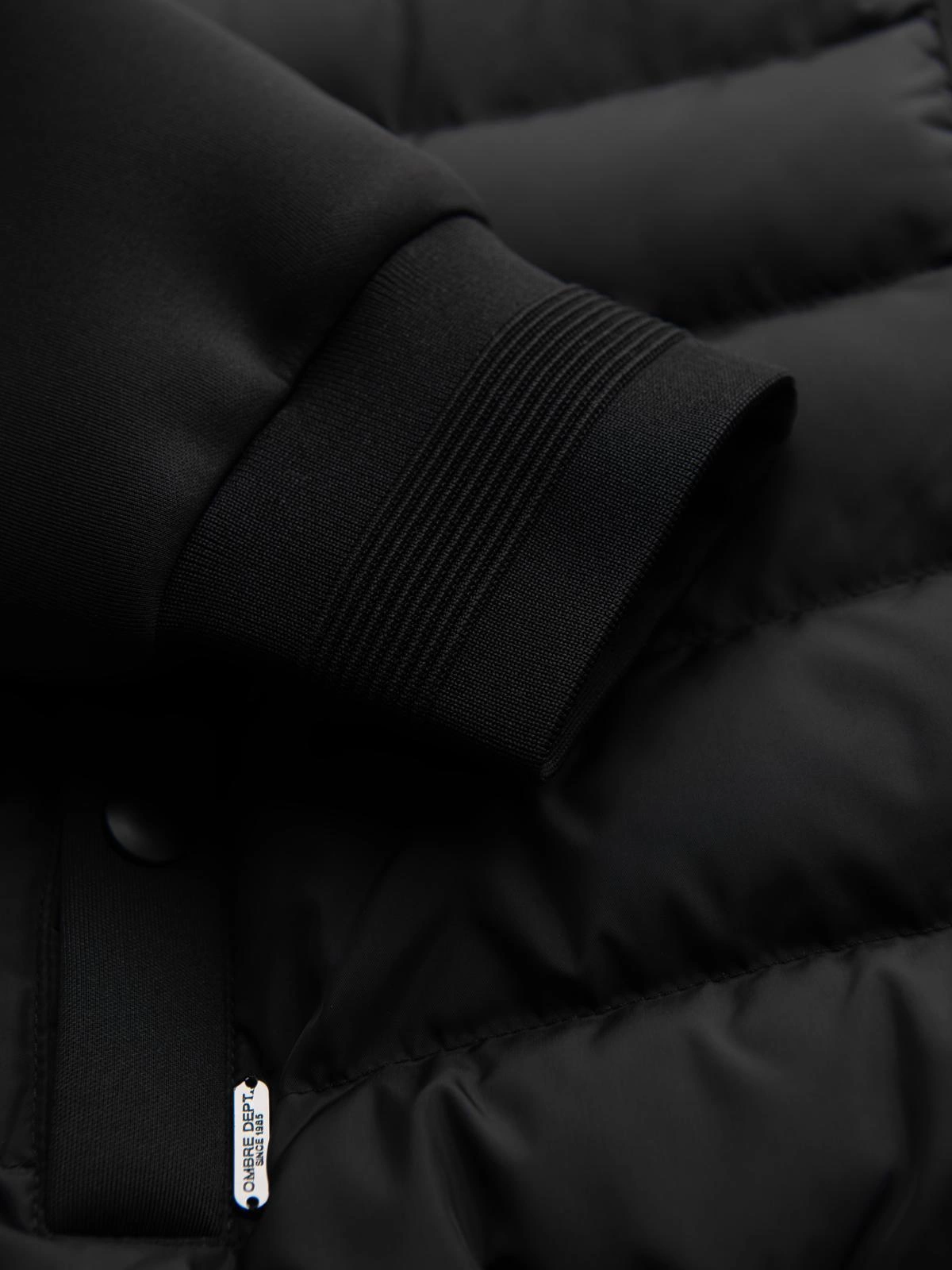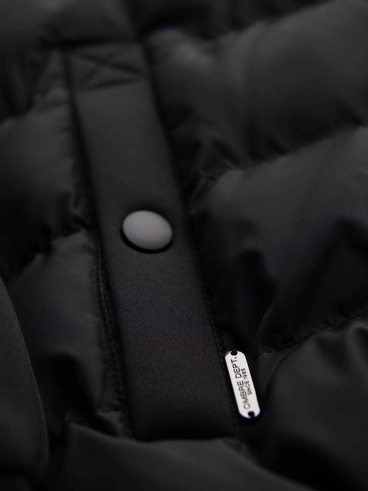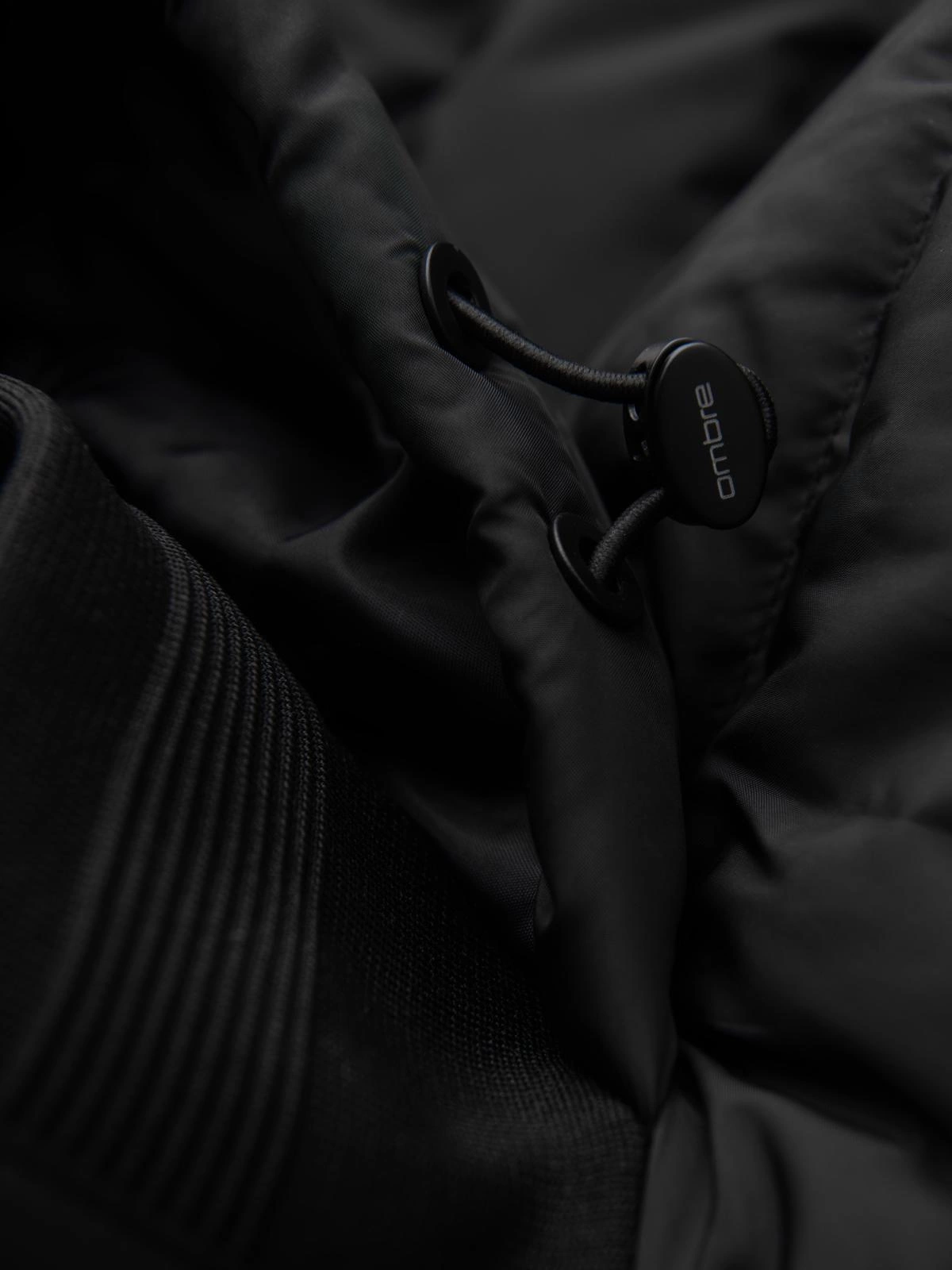Prešívaná bunda bomber s kapucňou a pletenými rukávmi - čierna V1 OM-JALP-0298