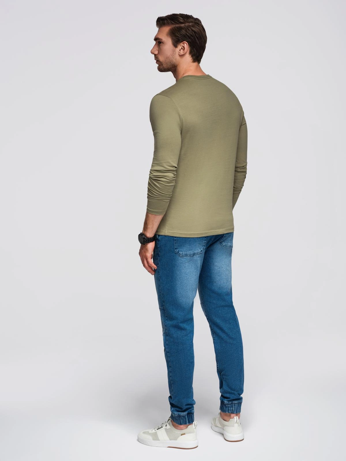 Pánske tričko s dlhým rukávom s mestskou potlačou - olivové V1 OM-LSPT-0131