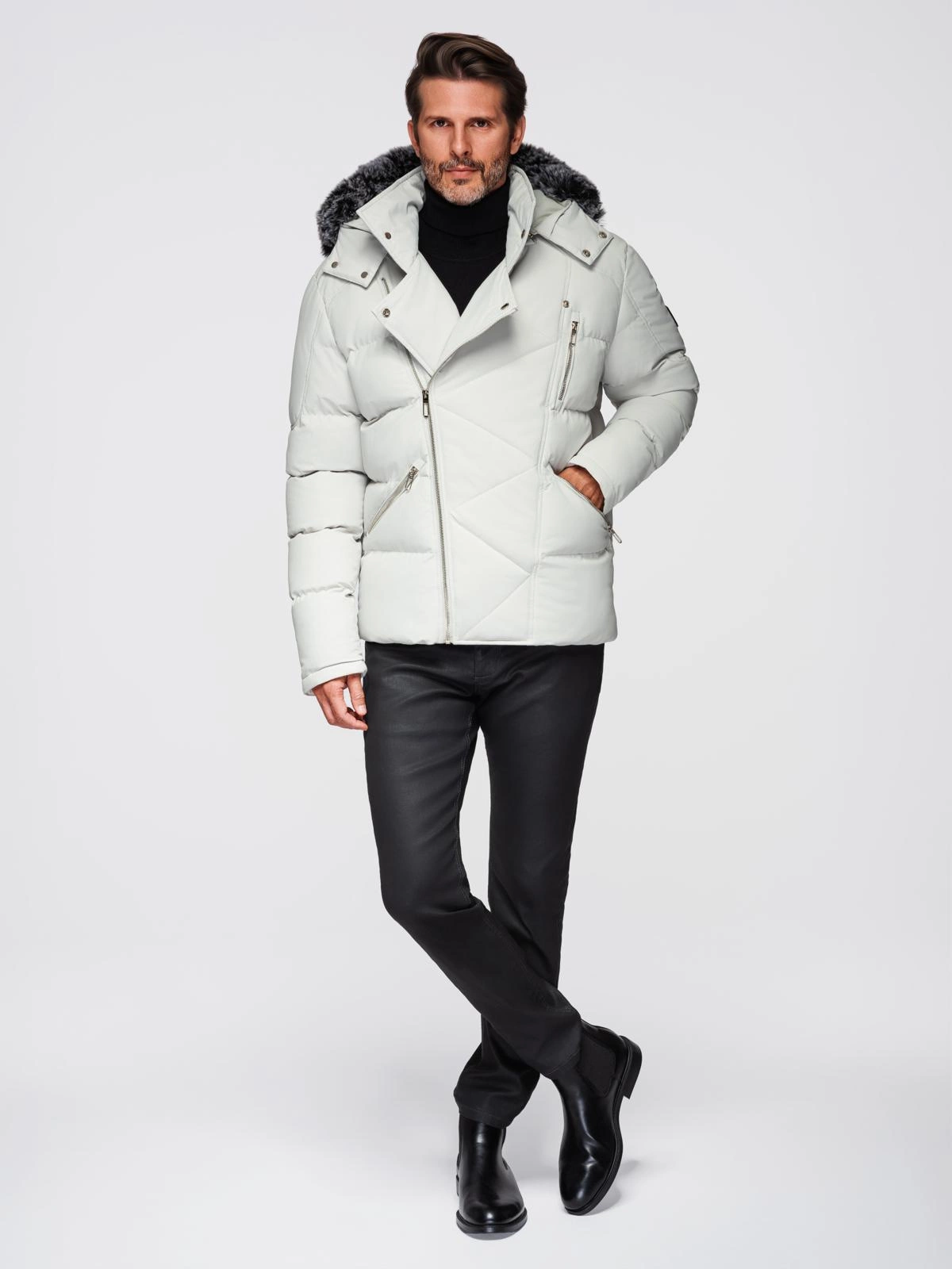 Štýlová a výrazná - táto bunda z kolekcie LEVEL UP je určená pre moderných mužov, ktorí oceňujú originálne spojenie funkčnosti a módneho vkusu. Prešívaná puzdrová konštrukcia, nápadné strieborné detaily a asymetrické zapínanie inšpirované klasickými Ramones vytvárajú jedinečný zimný vzhľad. Model upúta pozornosť vďaka kapucni s kožušinou a charakteristickému prešívaniu na klope.