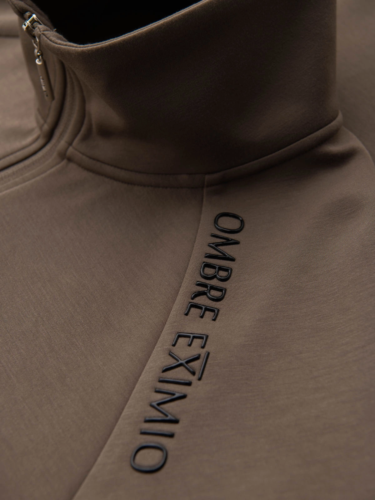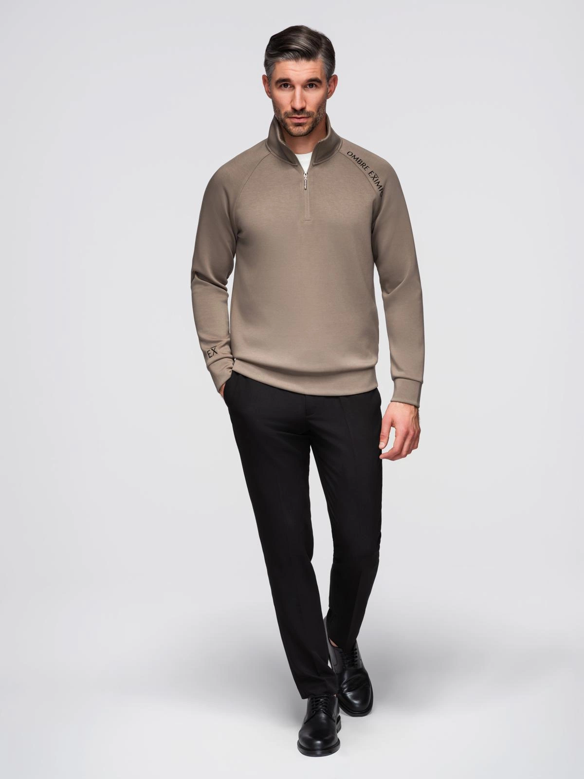 Pánska mikina s kontrastnou potlačou a vysokým golierom - sivo-hnedá V3 OM-SSZP-0211
