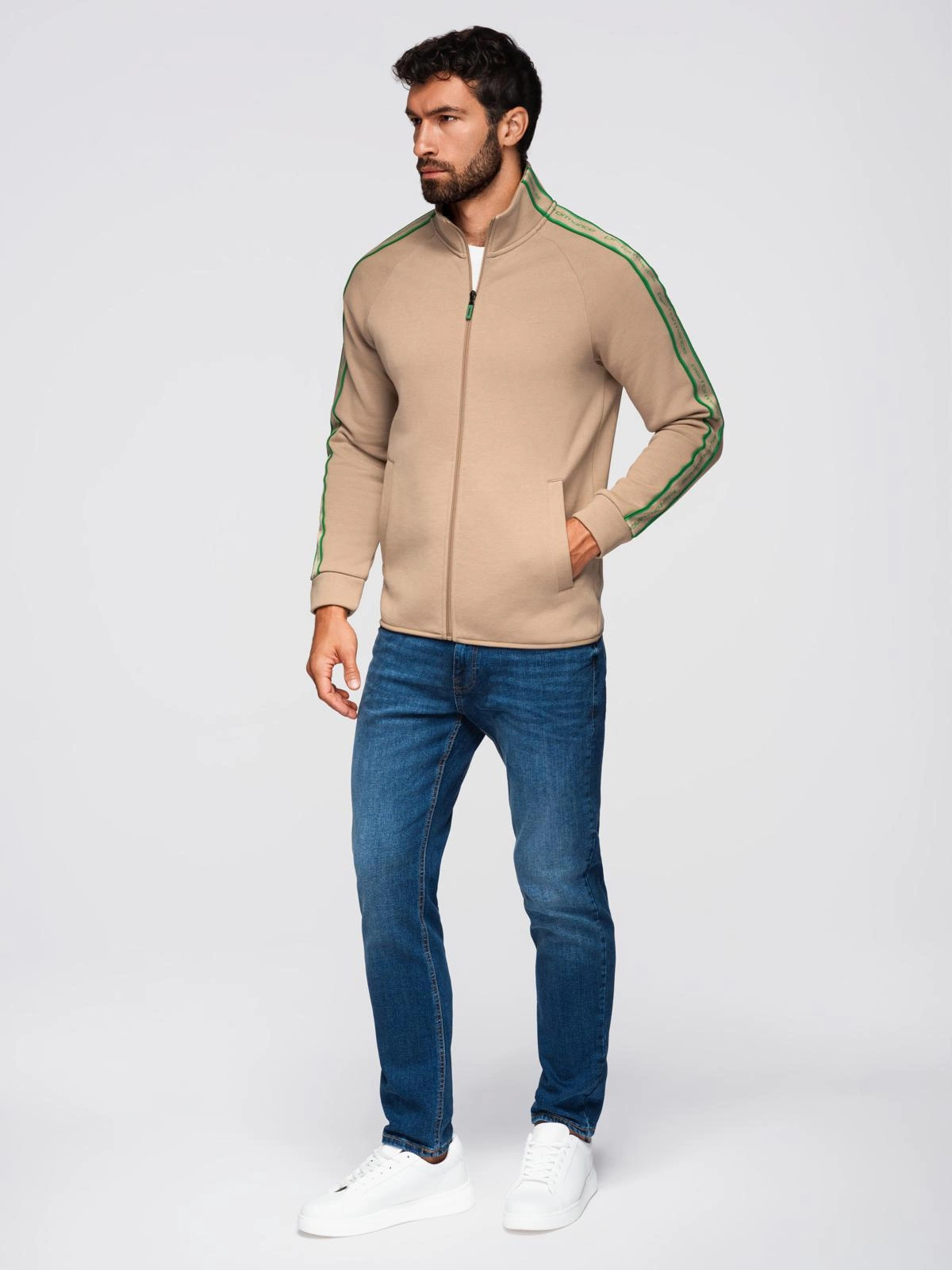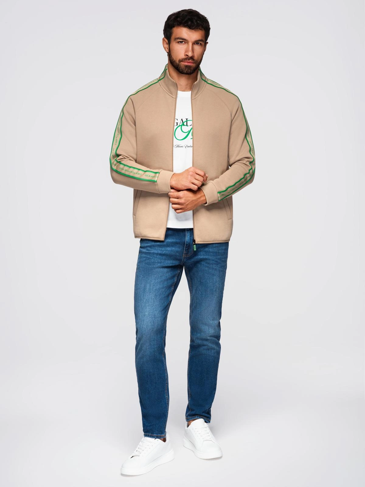 Pánska mikina s otvoreným predným dielom, lemovaním a vysokým golierom - hnedá V1 OM-SSZP-0224
