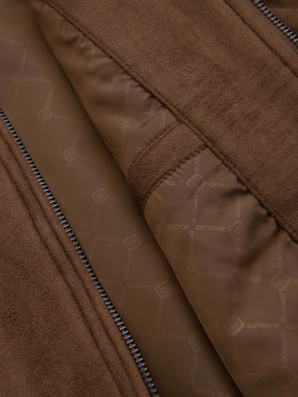 Pánska bomberová bunda z imitácie semišu - hnedá V1 OM-JAFL-0232