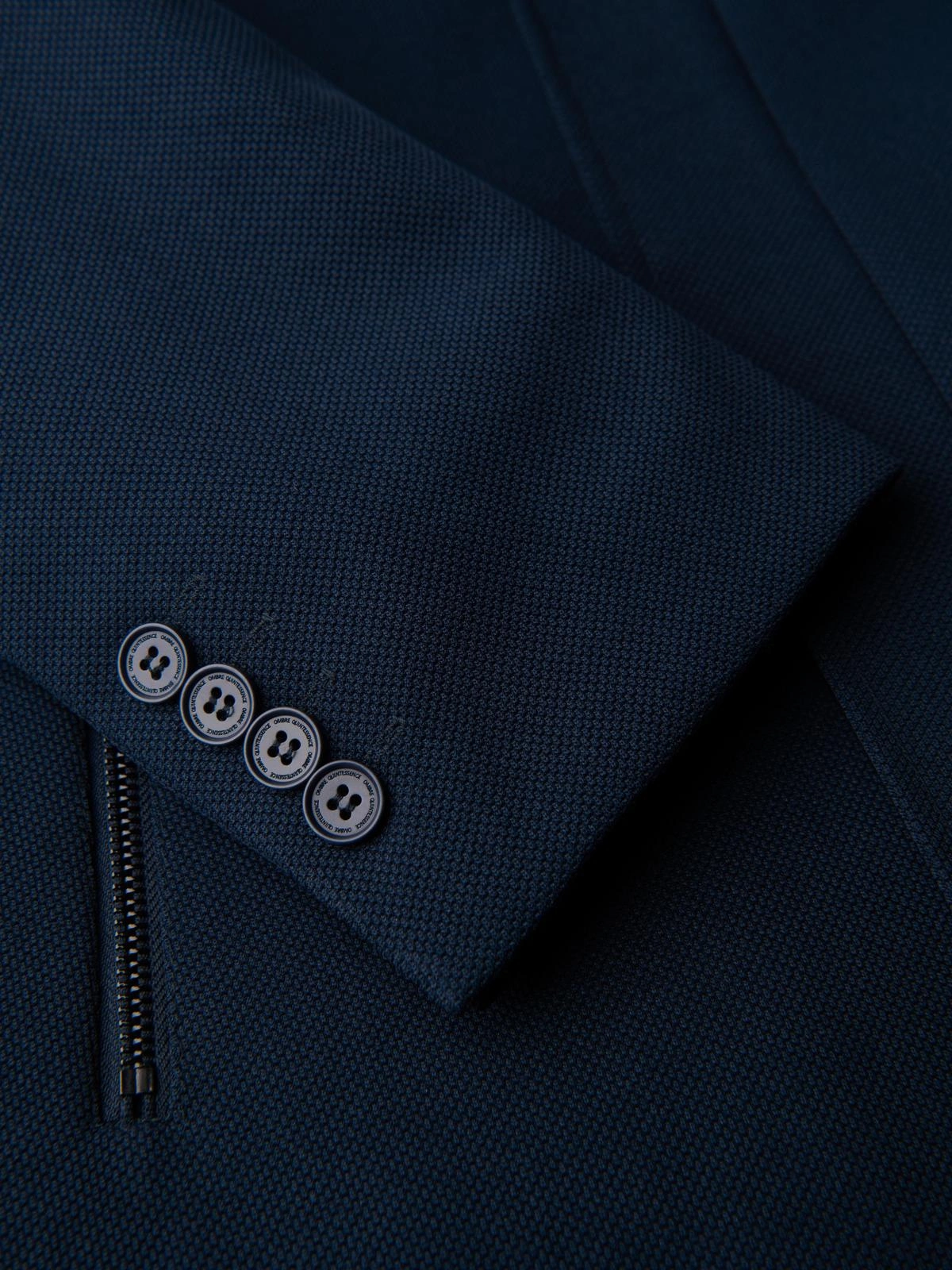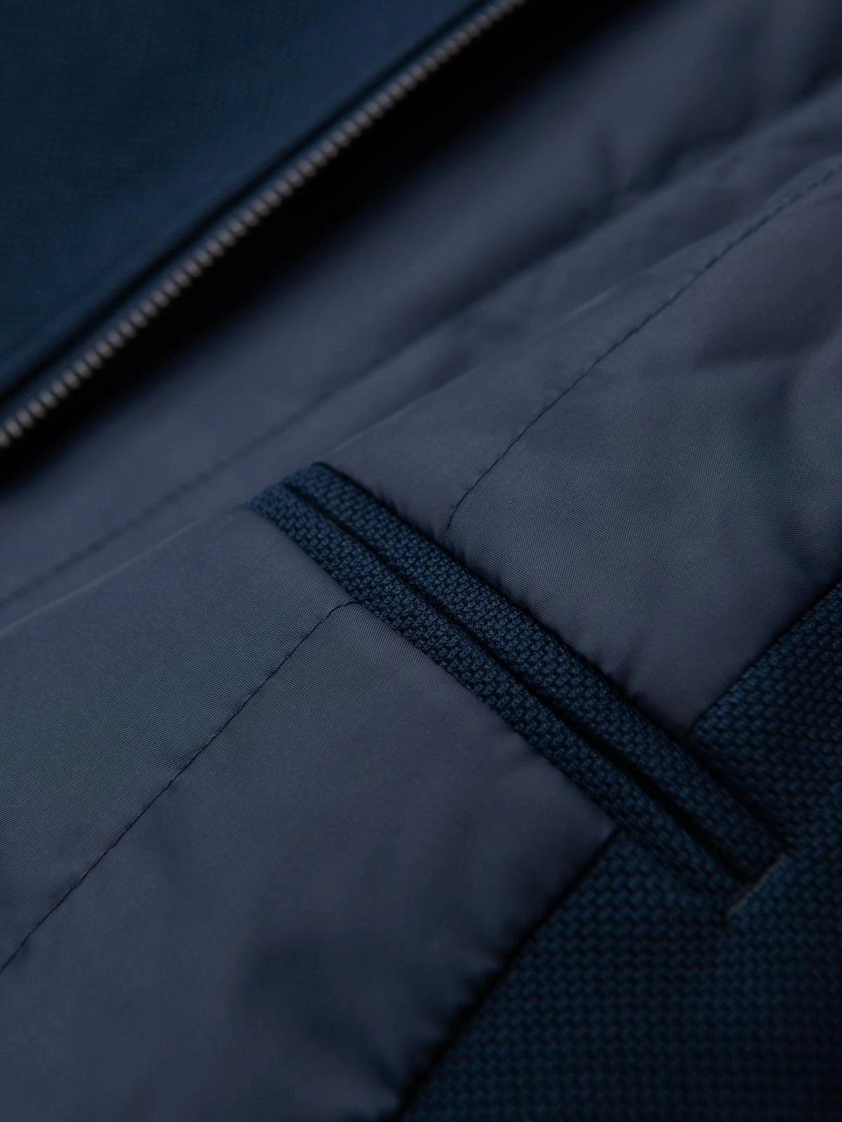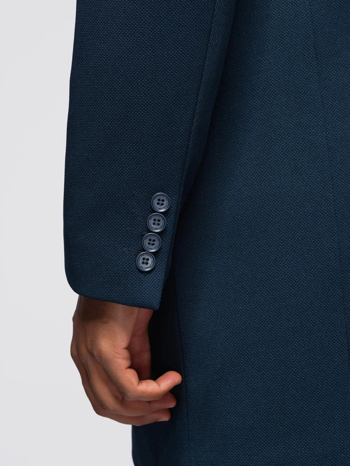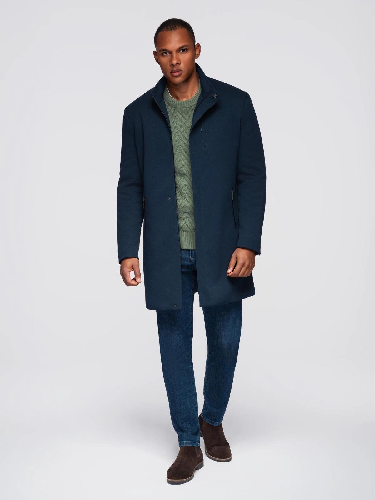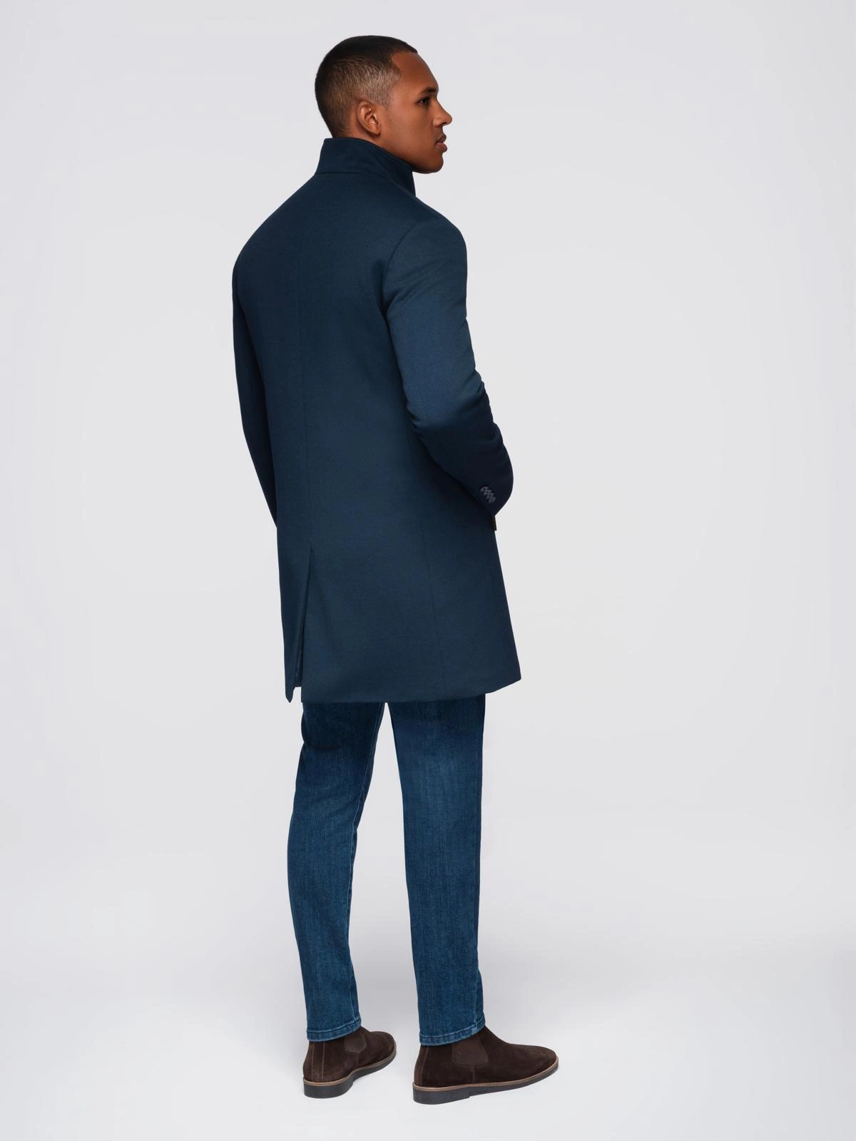 Pánsky štruktúrovaný kabát s vysokým golierom - tmavomodrý V2 OM-COWC-0136