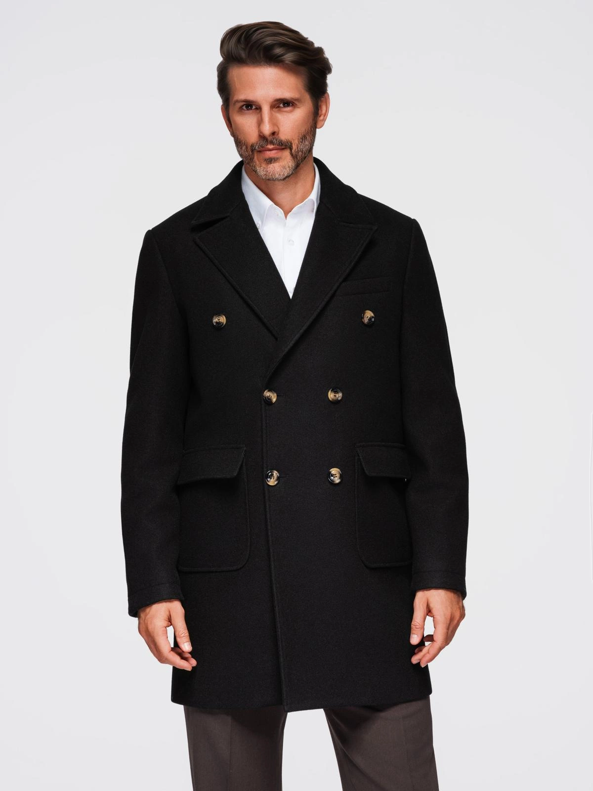 Pánsky dvojradový kabát s ozdobnými gombíkmi - čierny V2 OM-COWC-0137