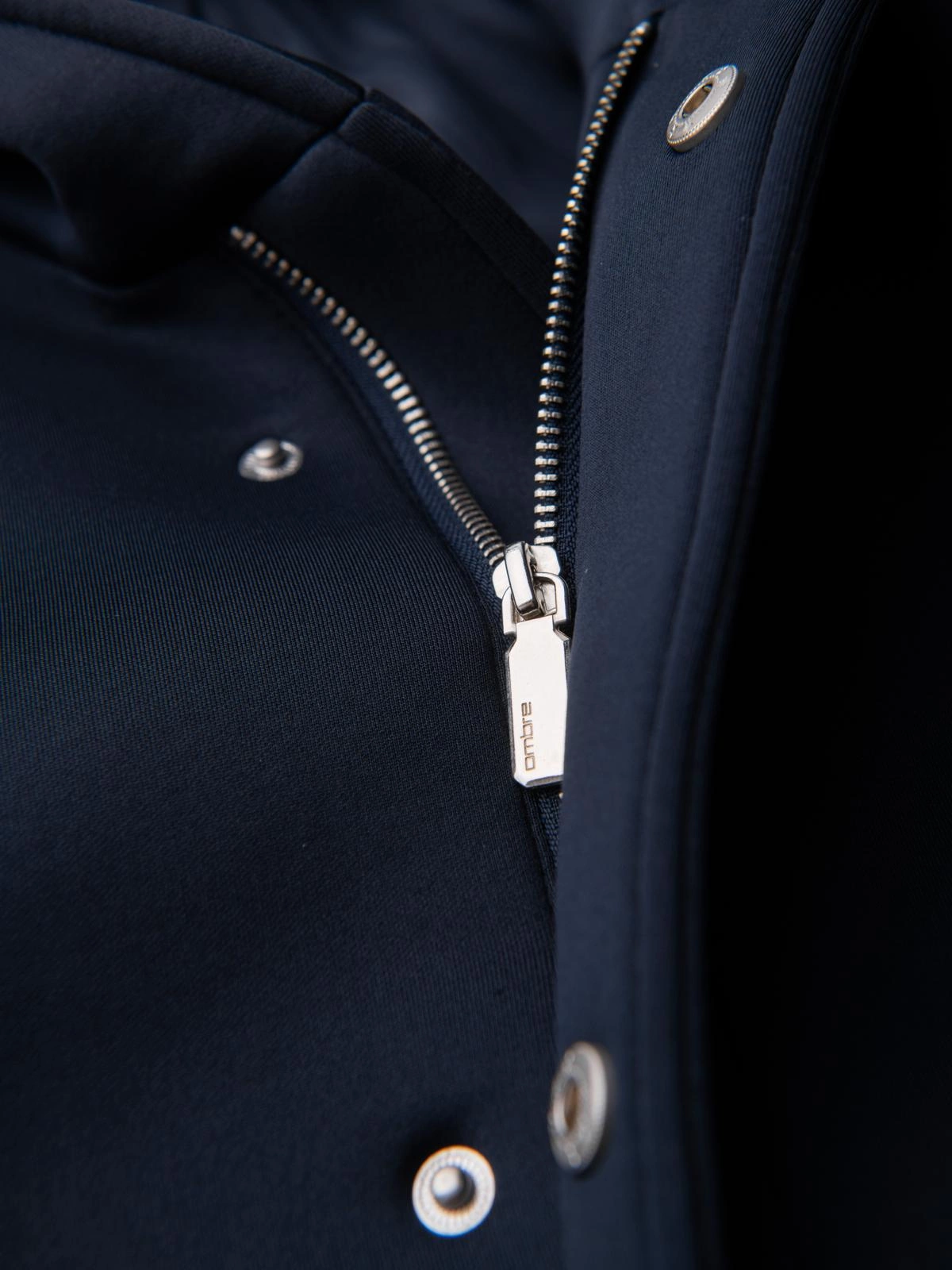 Pánsky minimalistický kabát strednej dĺžky s kapucňou - tmavomodrý V5 OM-COLC-0144