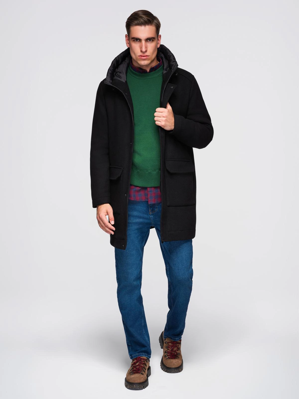 Pánsky vlnený kabát s kapucňou - čierny V1 OM-COWC-0132
