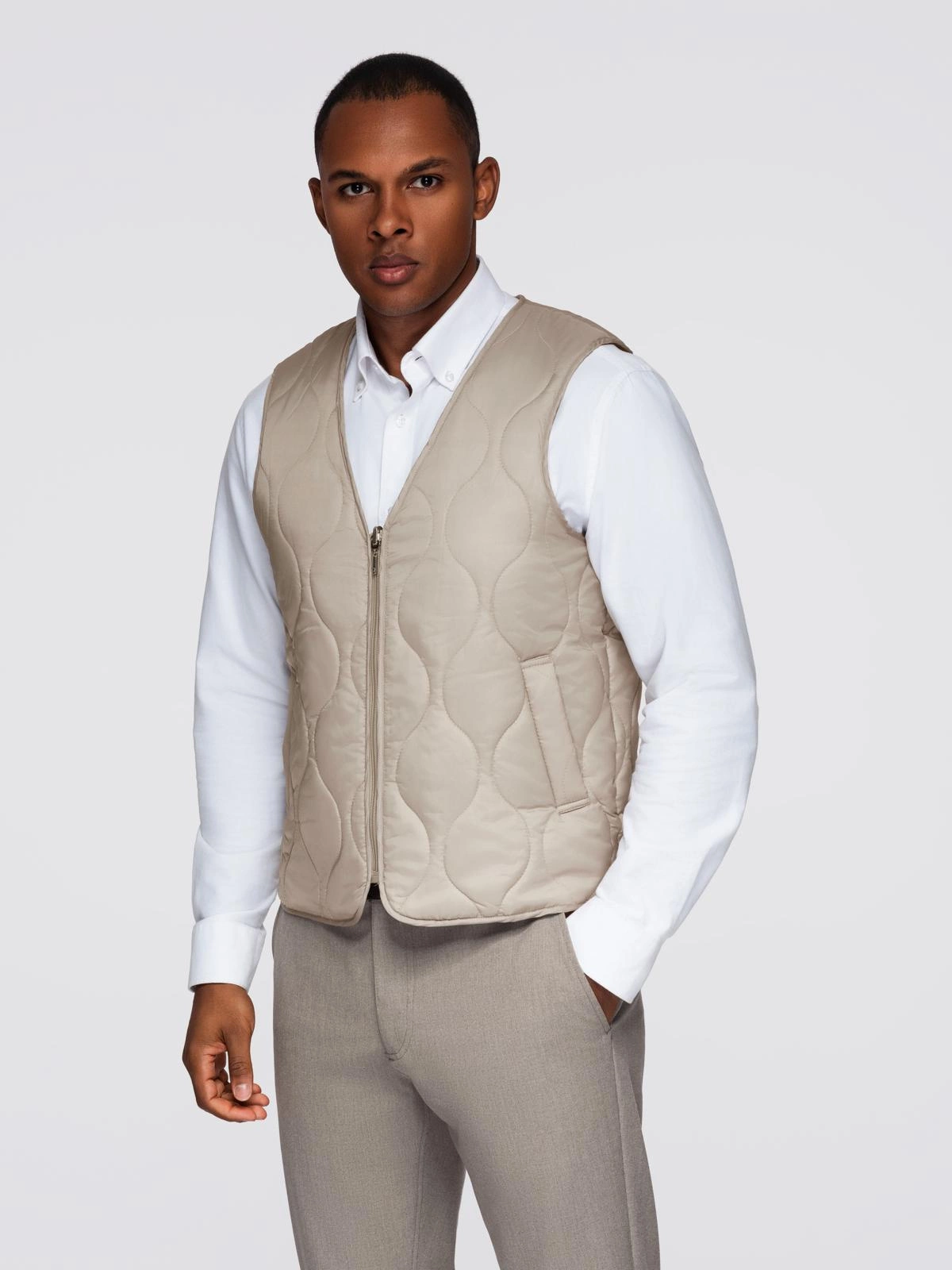 Pánsky minimalistický kabát s odnímateľnou vestou - béžový V1 OM-COLC-0139