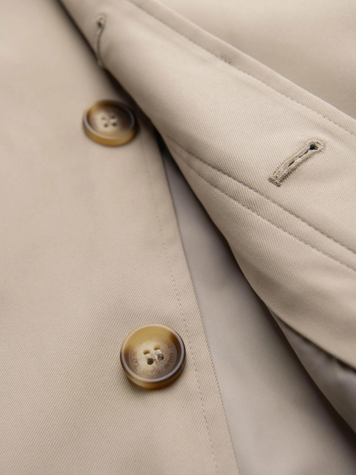 Sofistikovaný minimalizmus sa snúbi s funkčnosťou - tento kabát z línie Quintessence je určený pre mužov, ktorí ocenia moderný štýl s elegantným nádychom. Jednoduchý, rafinovaný strih a béžová farba sa hodia k nadčasovému dress-code a sú rovnako vhodné do mestskej džungle aj na slávnostné príležitosti. Vnútorná prešívaná vesta na zips dodáva štýlu nielen hrejivú vrstvu, ale aj vrstevnatosť. Celý kúsok je dokončený s dôrazom na detail - od skrytého zapínania až po kovové akcenty s logom značky.