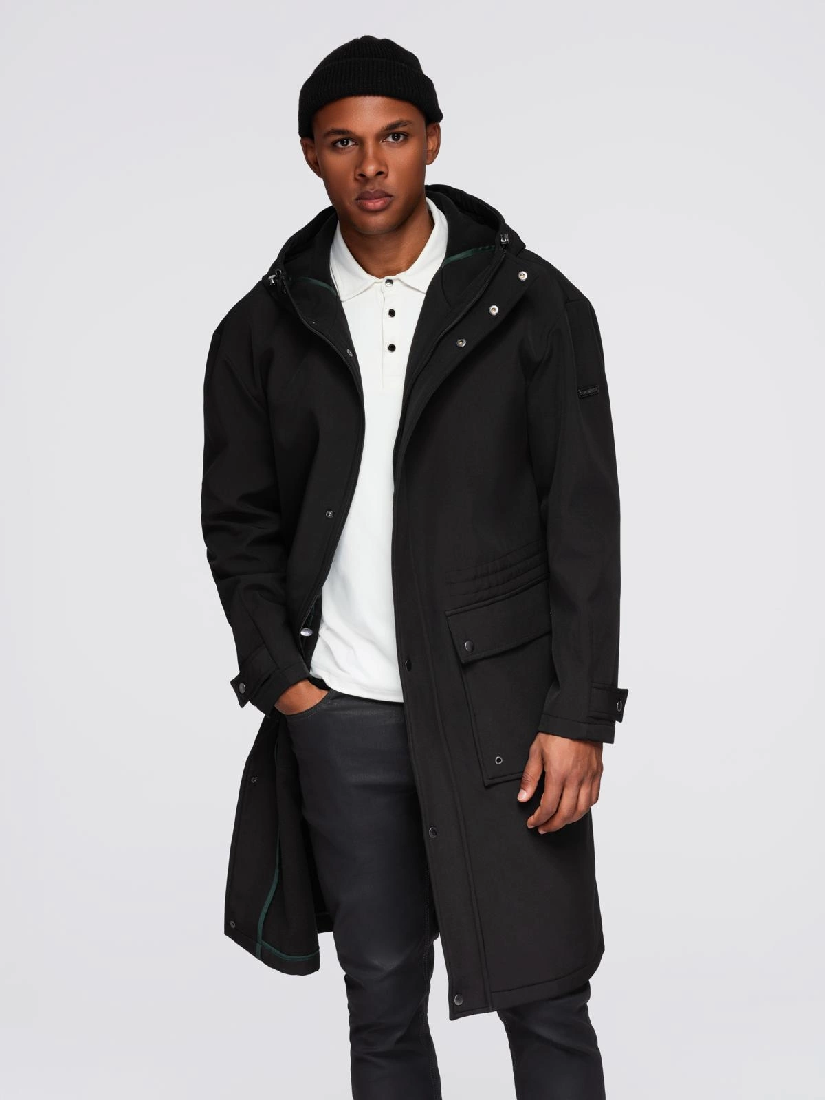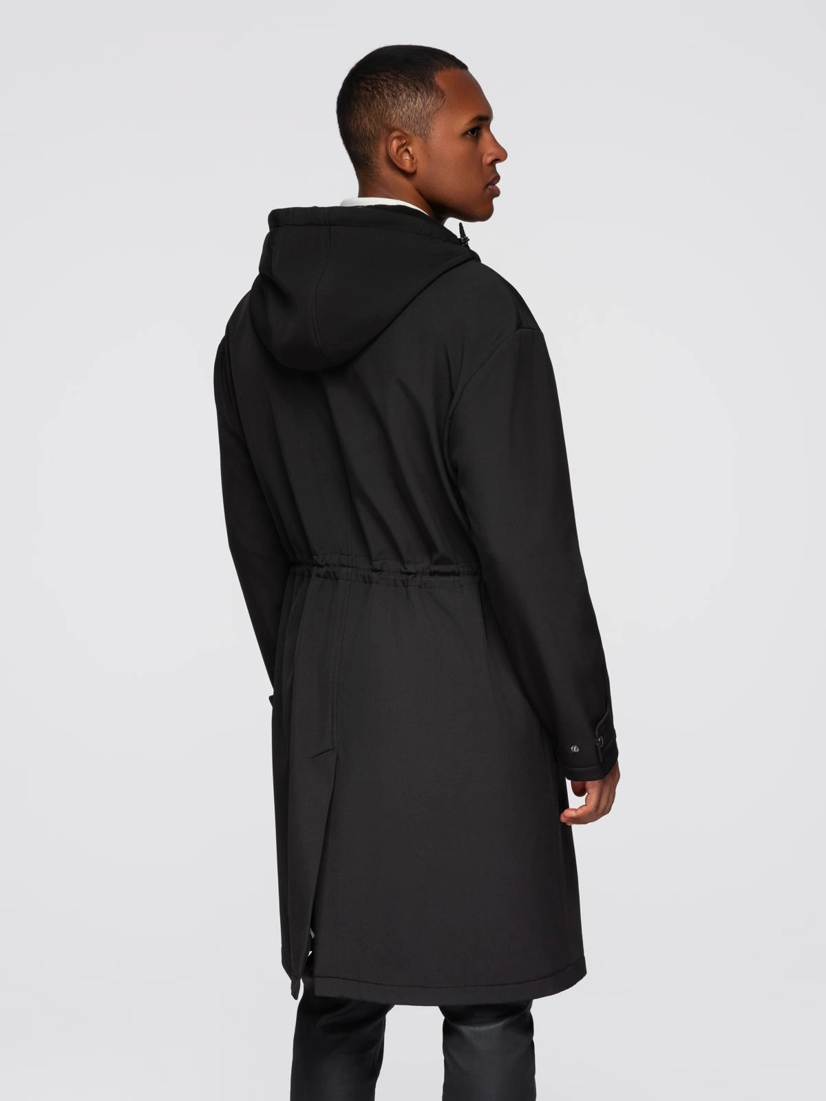 Pánsky kabát parka s fleecovou podšívkou a reguláciou pásu - čierny V2 OM-JAPJ-0314