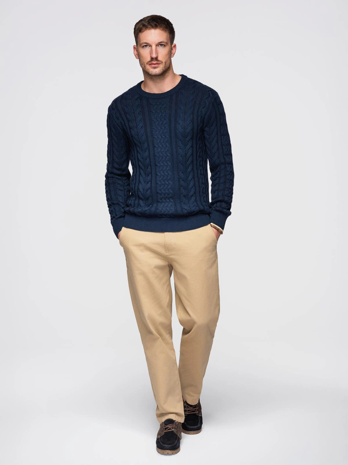 Pánsky elegantný sveter so zaujímavou väzbou - tmavomodrý V5 OM-SWSW-0173