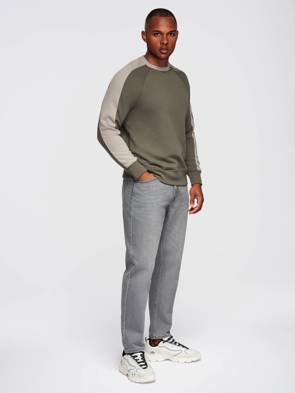 Pánska mikina s kontrastným lemovaním a raglánovými rukávmi - olivová V1 OM-SSNZ-0200