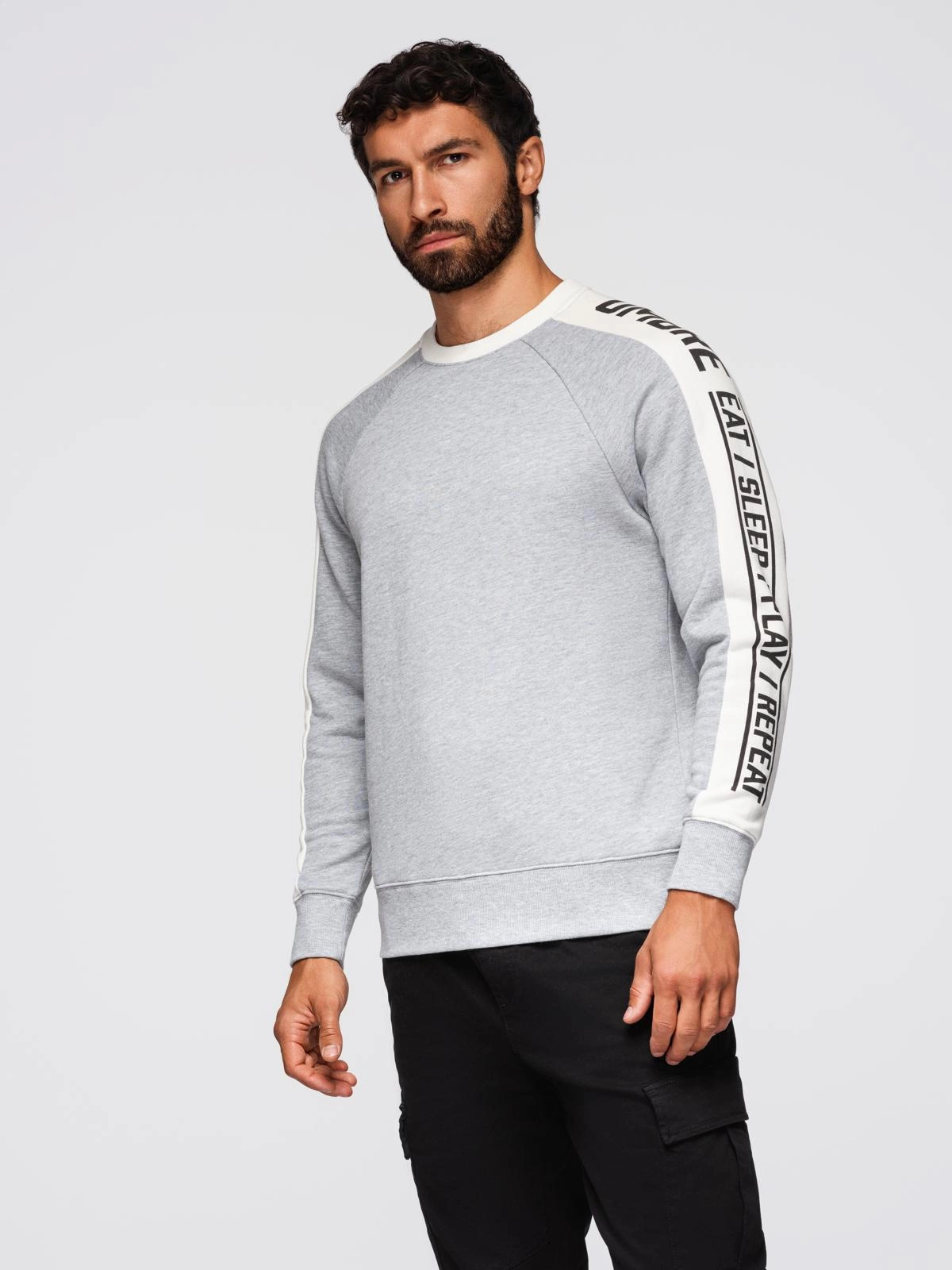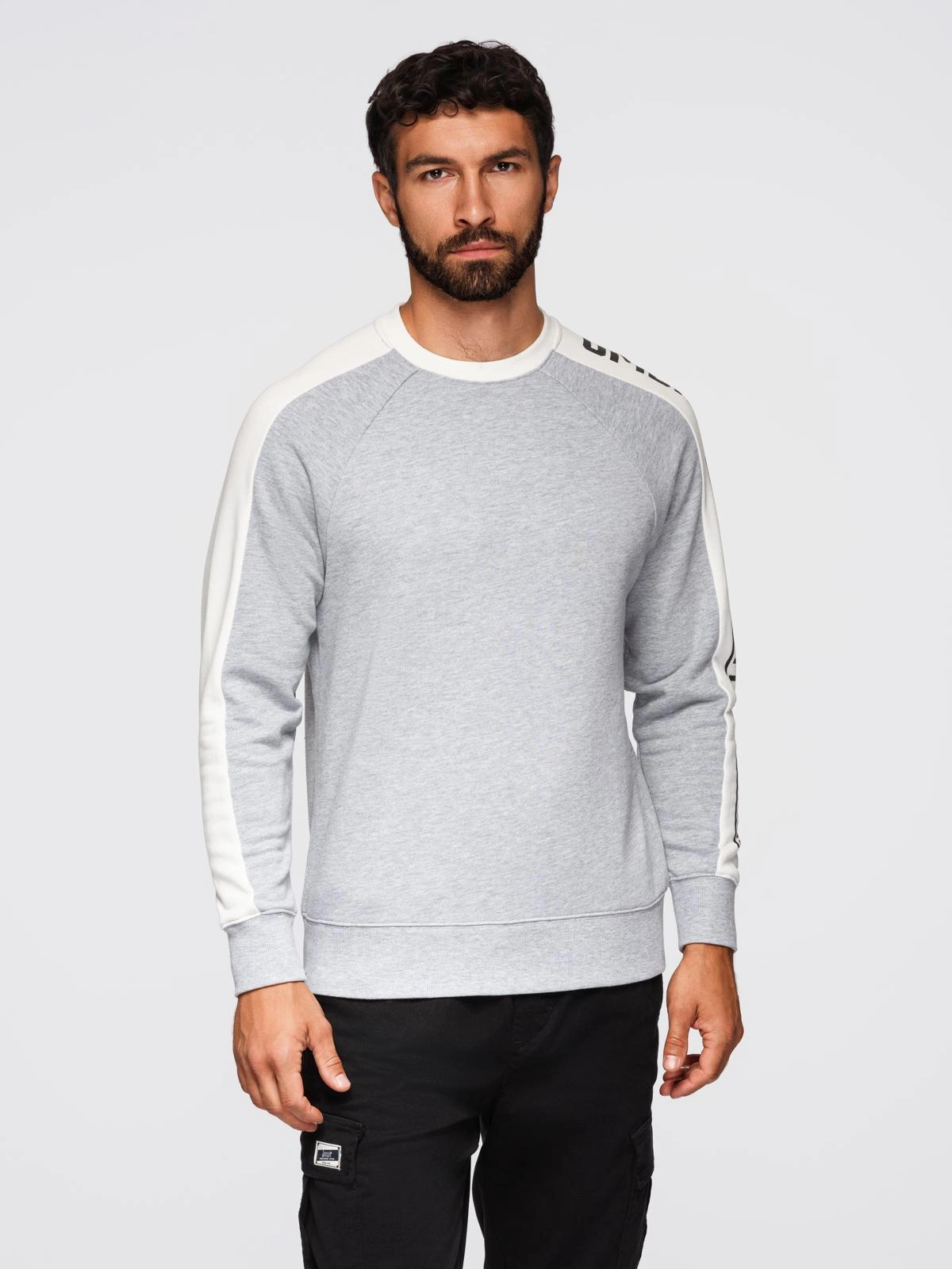 Pánska mikina s kontrastným lemovaním a raglánovými rukávmi - sivý melír V2 OM-SSNZ-0200