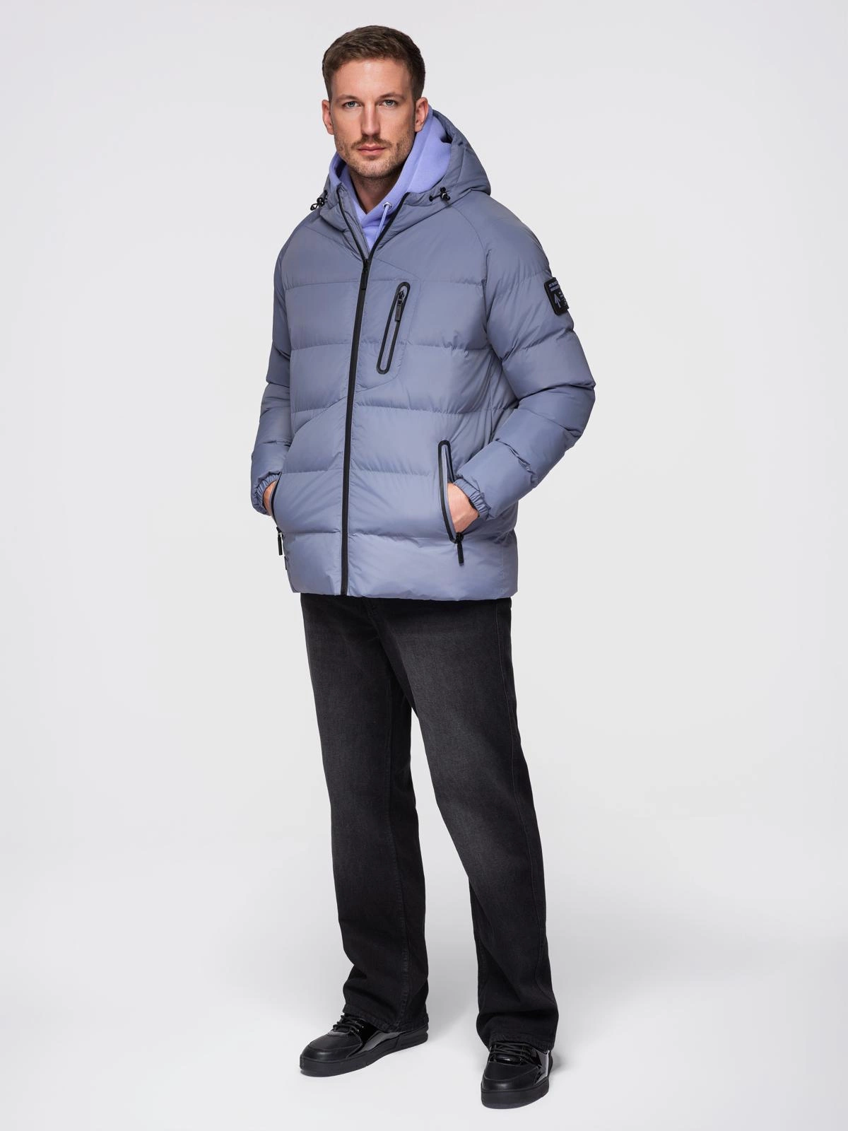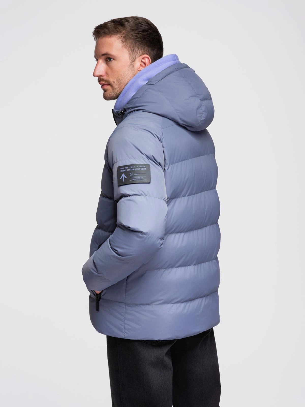Pánska zateplená prešívaná bunda s raglánovými rukávmi - faded purple V6 OM-JAHP-0302
