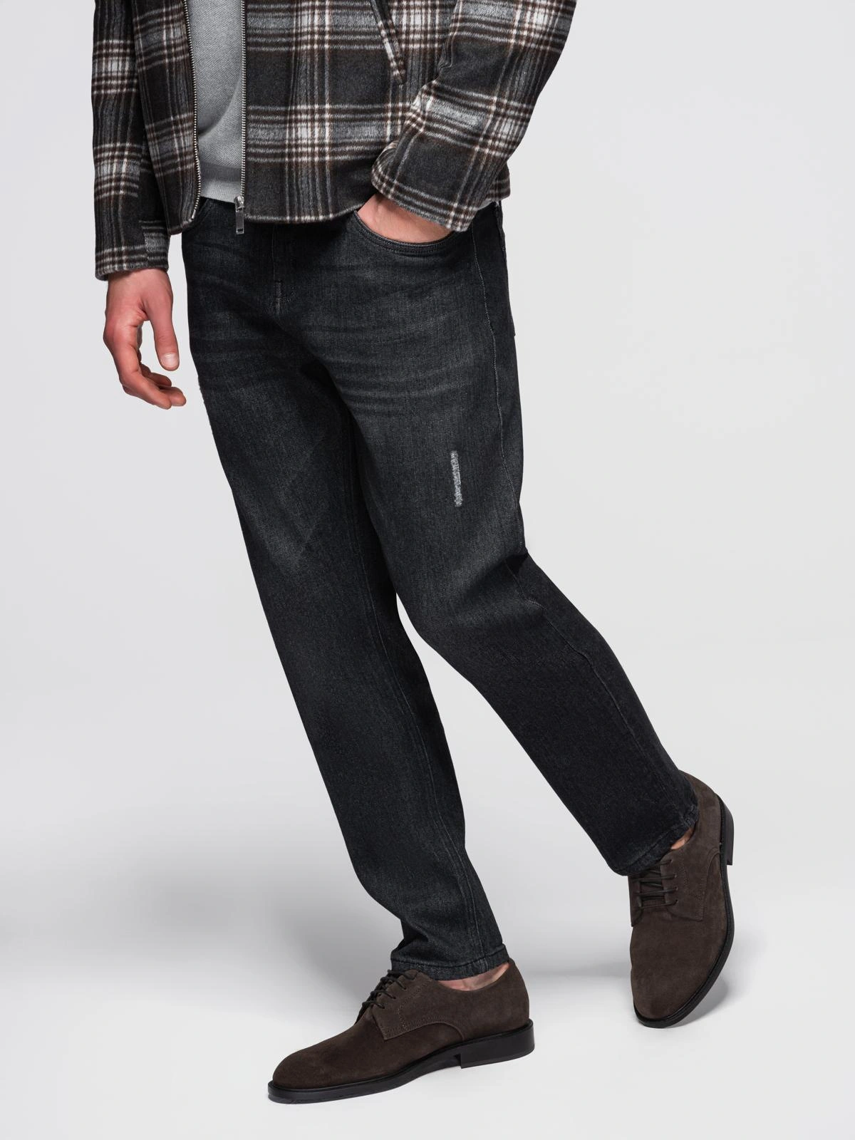 Pánske džínsové nohavice s odieraním REGULAR FIT - čierne V2 OM-PADP-0241