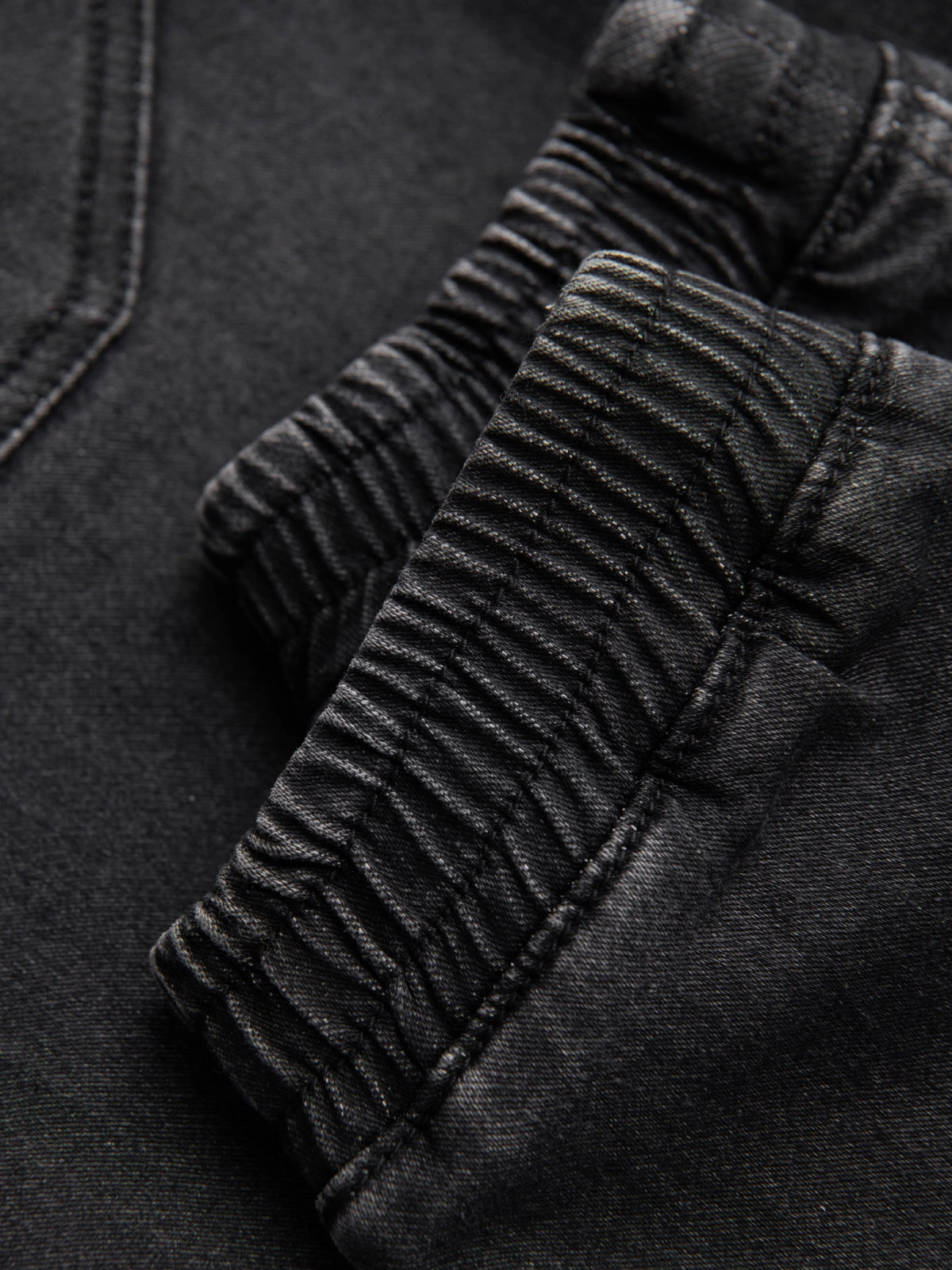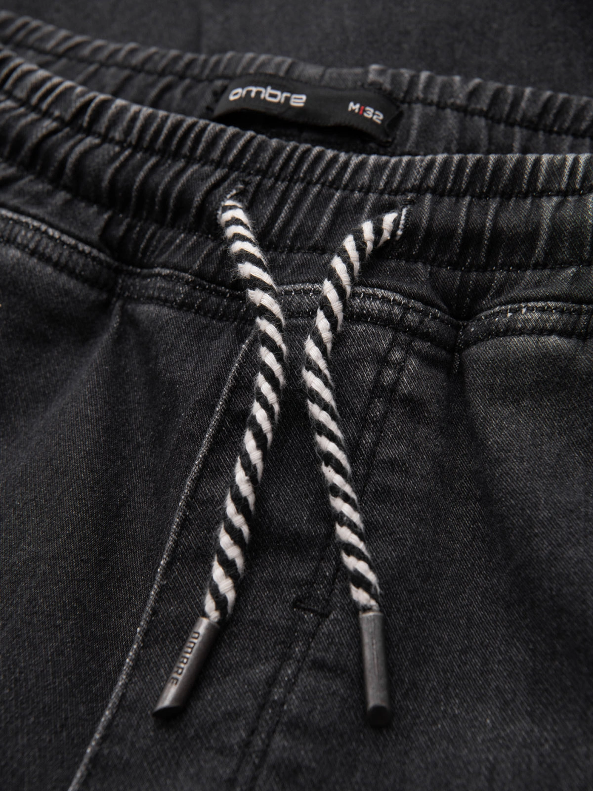 Pánske džínsové nohavice so šnúrkou v páse - čierne V4 OM-PADJ-0242