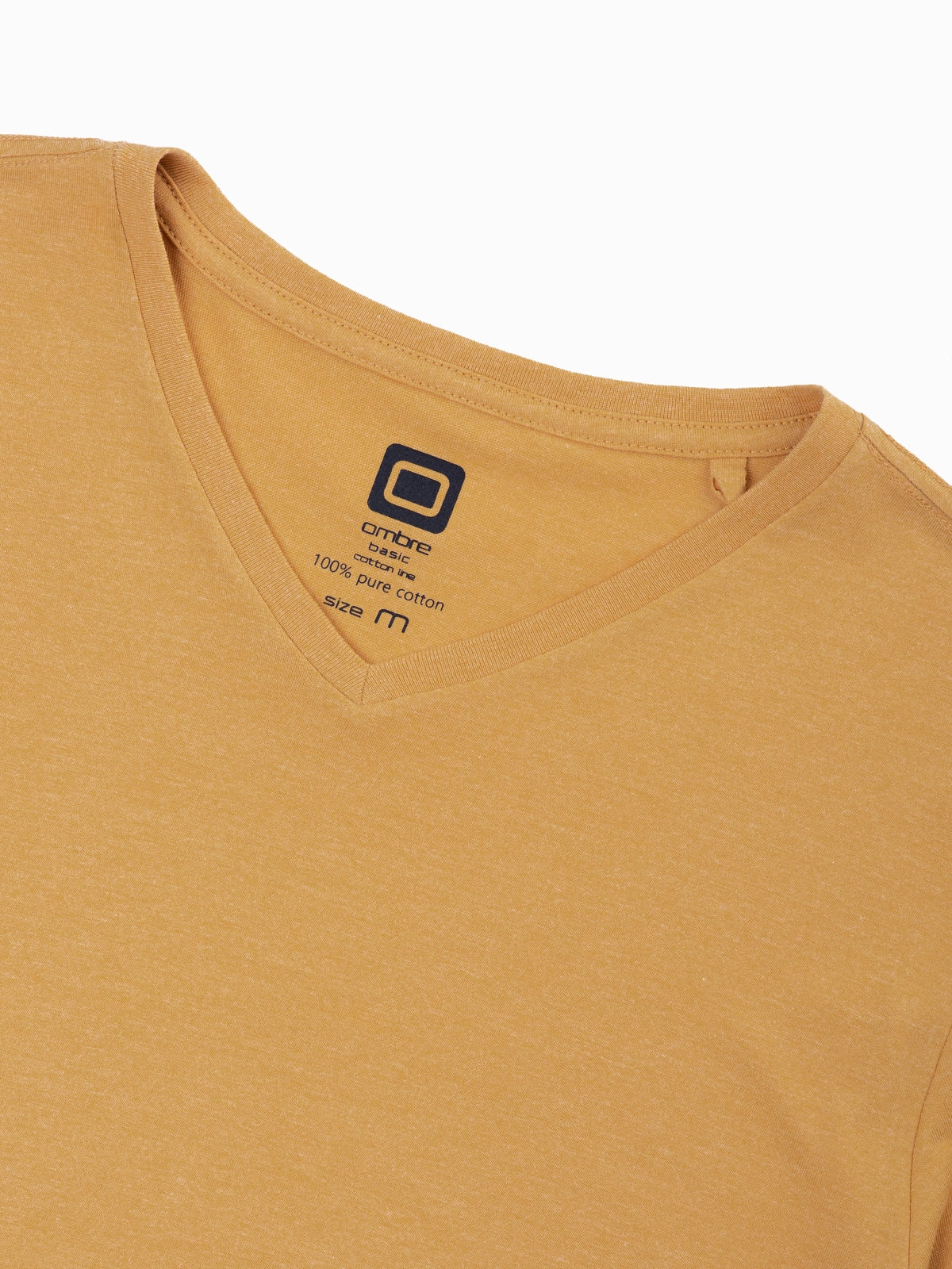 Klasické pánske tričko BASIC s výstrihom - horčicový melír V19 S1369