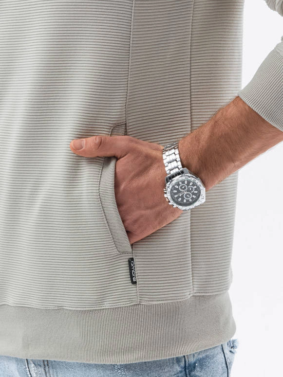 Pánska mikina cez hlavu s reglánovými rukávmi. Mikina je vyrobená z otomanského úpletu. Mikina má zavedené strihy s vreckami. Vďaka mierne prispôsobenému strihu dokonale sedí na tele. Mikina ponúka skvelé možnosti stylingu a dá sa kombinovať s džínsami aj teplákmi. Skvele sa hodí na každodenné štylizovanie.