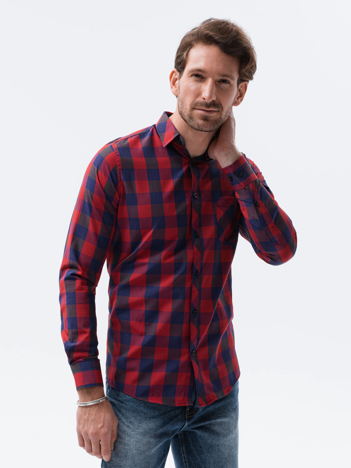 Pánska károvaná košeľa s dlhým rukávom - červeno-námornícka K282