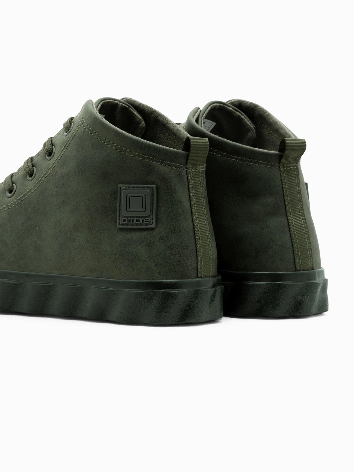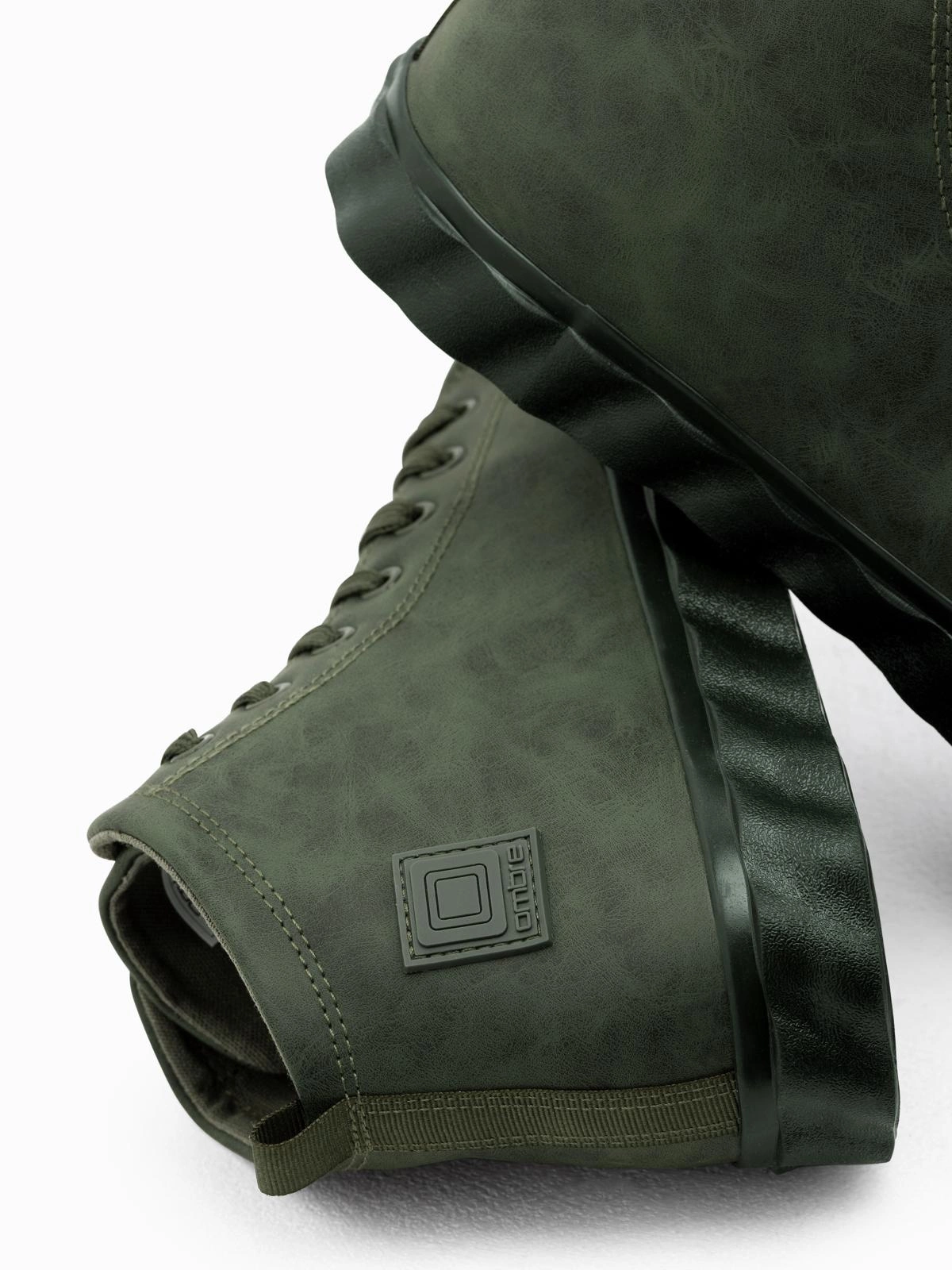 Pánske vysoké tenisky s ozdobnou zvlnenou podrážkou - olivová V3 OM-FOTH-0126