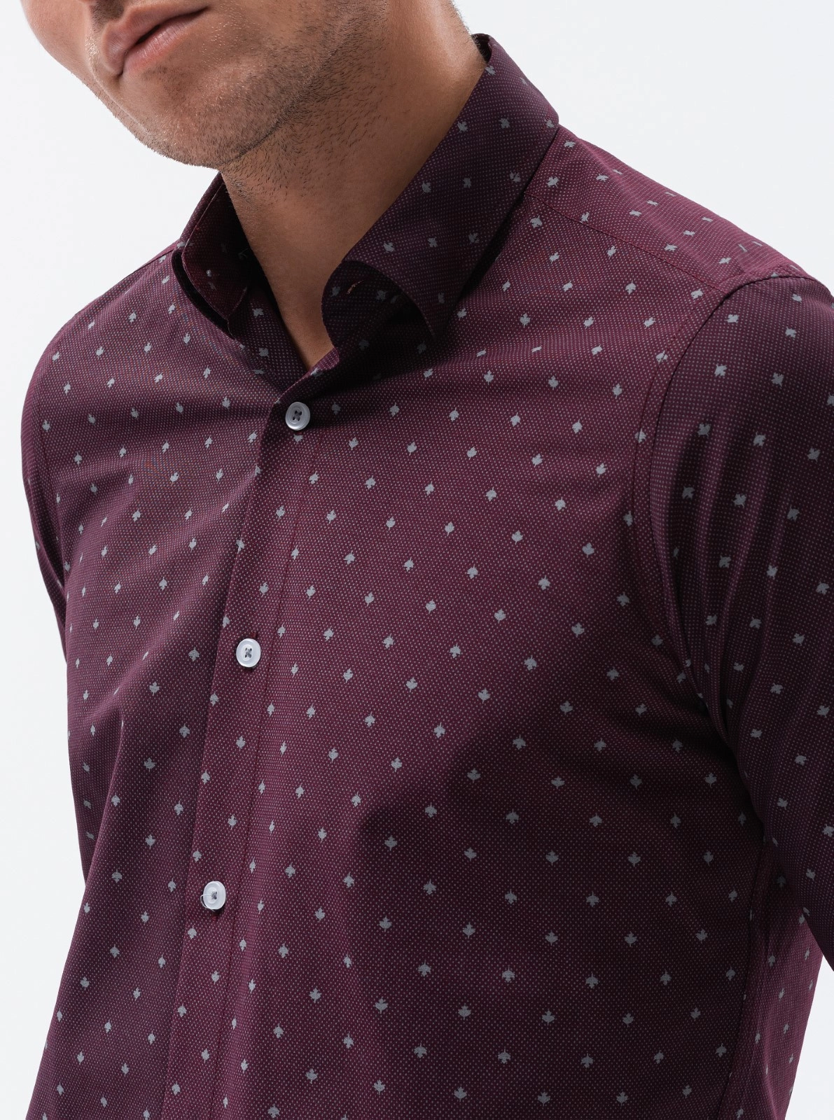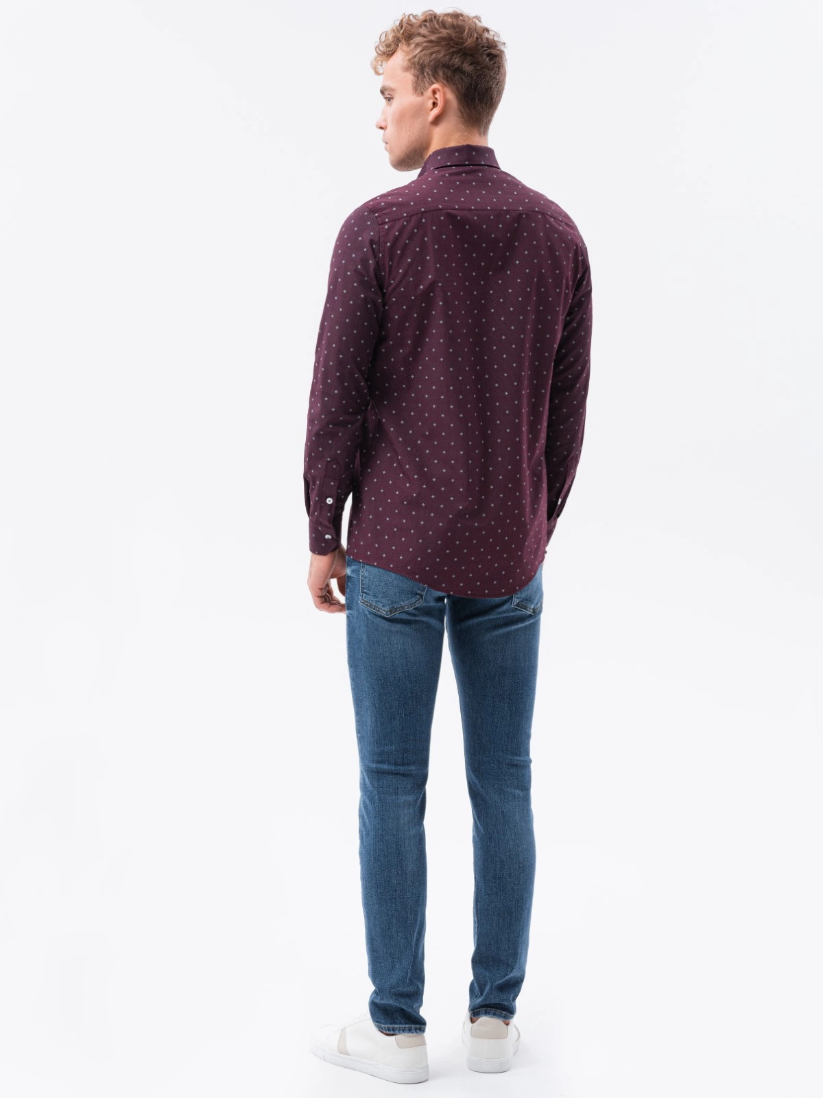 Pánska elegantná košeľa s dlhým rukávom - bordová K463